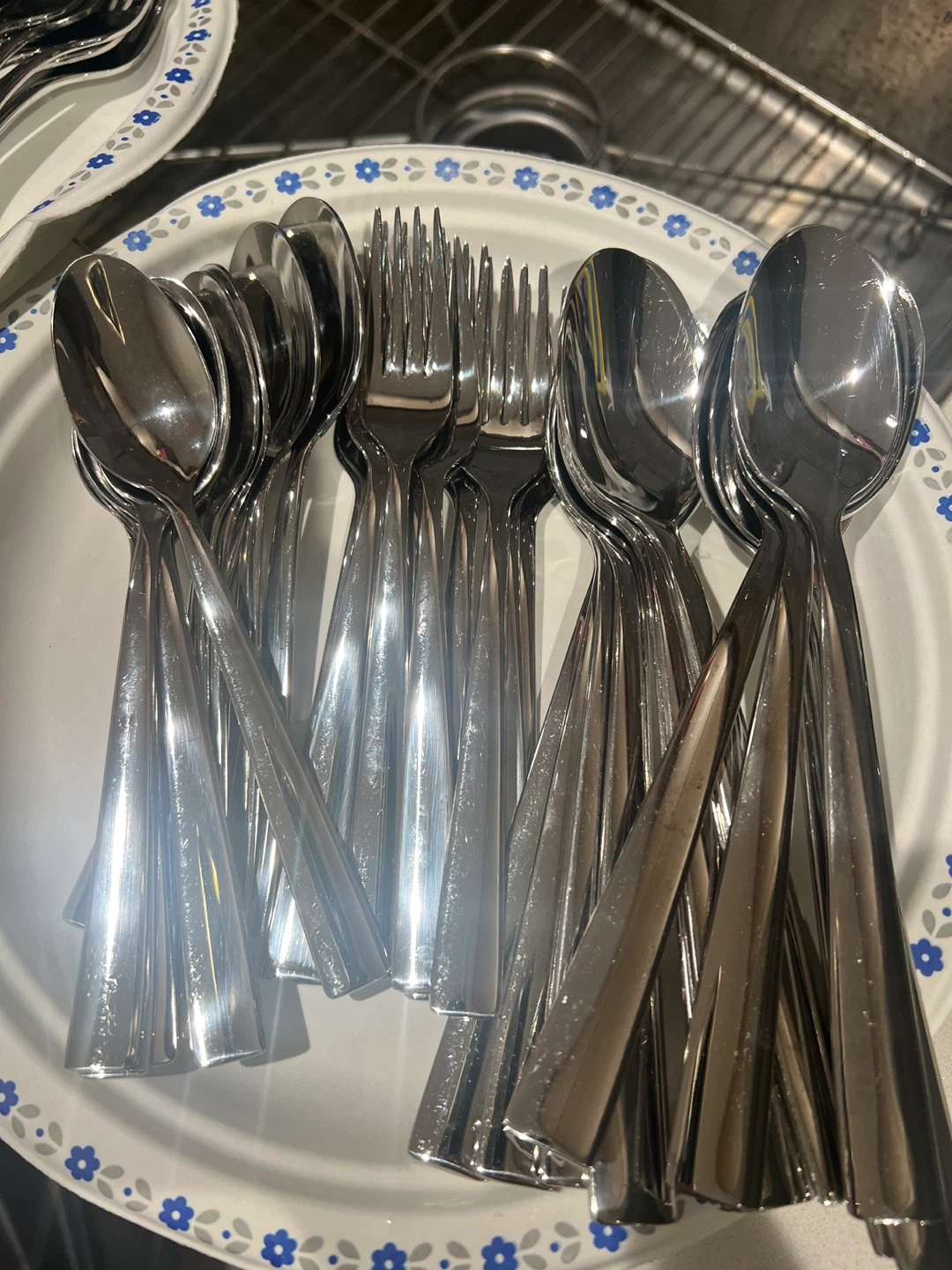 31Selling a cutlery set that includes forks, knives, and spoons! They're in good condition and ready for a new home At least 11 of each