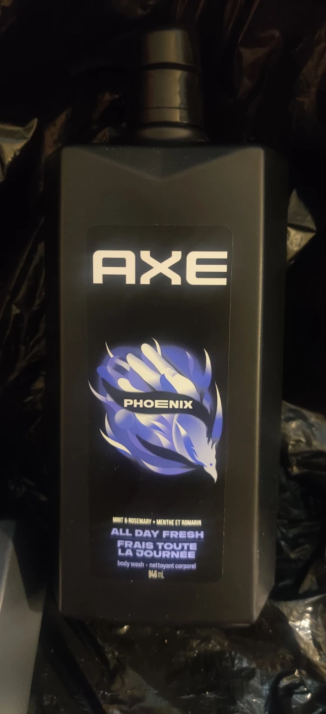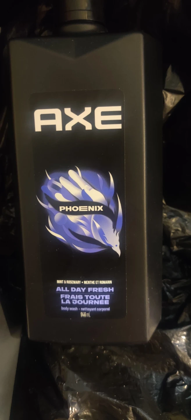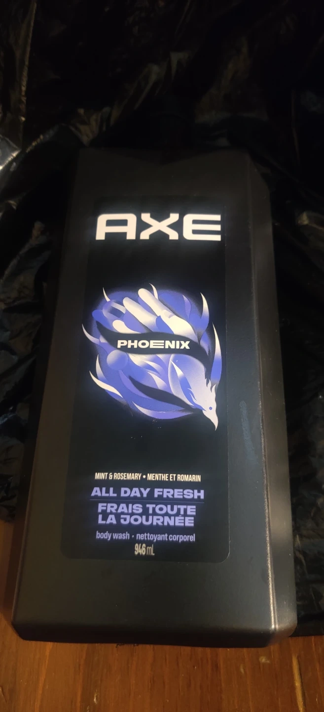These Axe Phoenix body wash comes in a 946 mL bottle. It features a mint and rosemary scent for an all-day fresh feeling. Hydrates your skin and contains no sulfates or parabens.