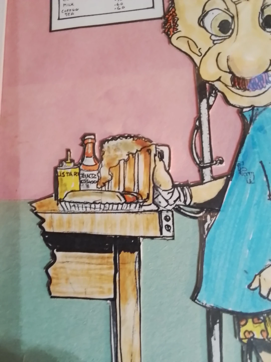 This is a vintage cartoon sketcher piece by the artist Walt Wright, measuring 17" x 13" and includes a Certificate of Authenticity (COA) from 1989. This unique piece of art captures Wright's distinctive style. I would consider the piece to be in good condition given the age.