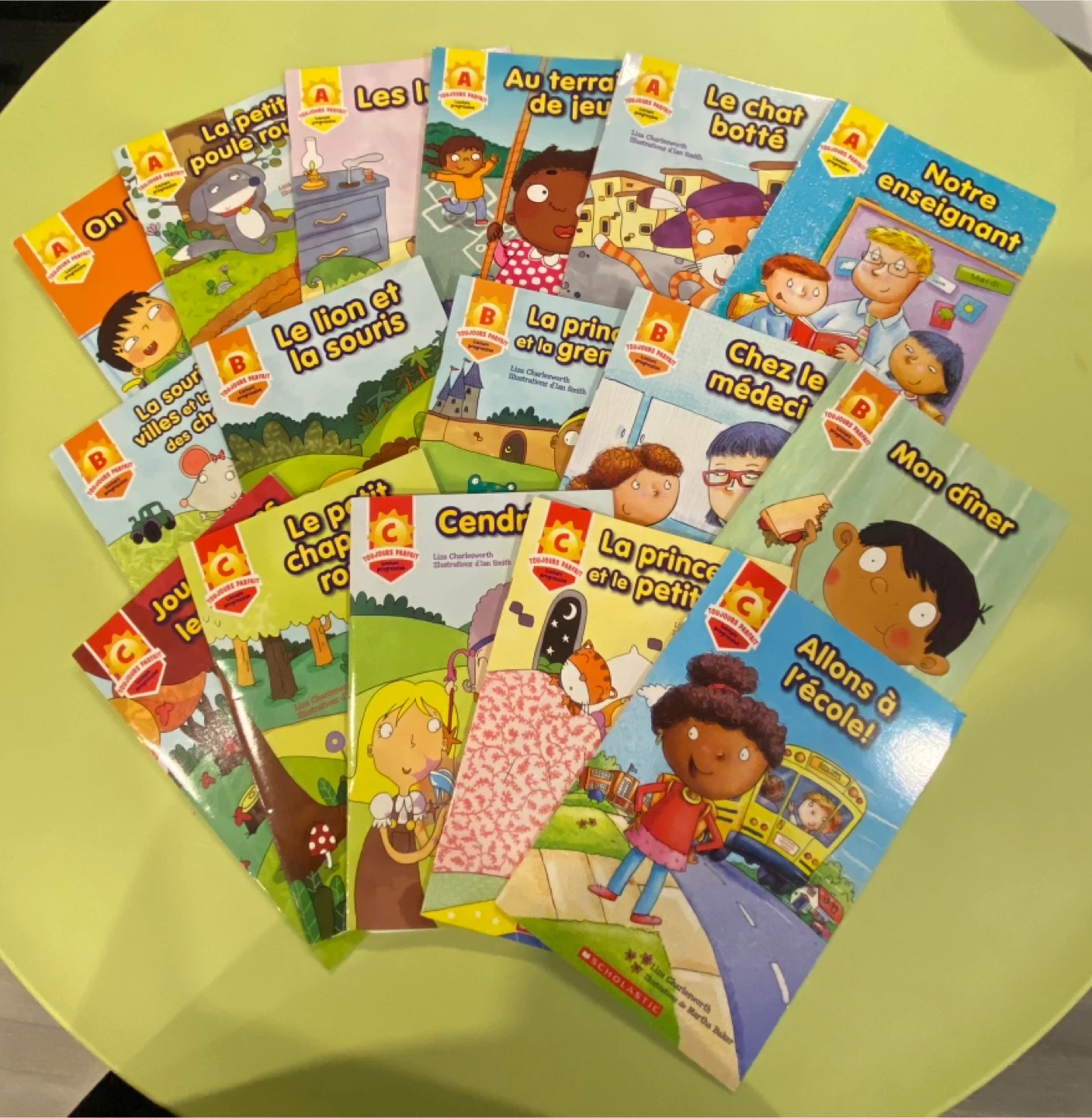 Collection of Scholastic's Toujours Parfait series French books. These are great for kids learning French or for French immersion programs. Each book has colourful illustrations and engaging stories. Perfect for building early reading skills in French. Sold as a set of (18). Excellent Condition.