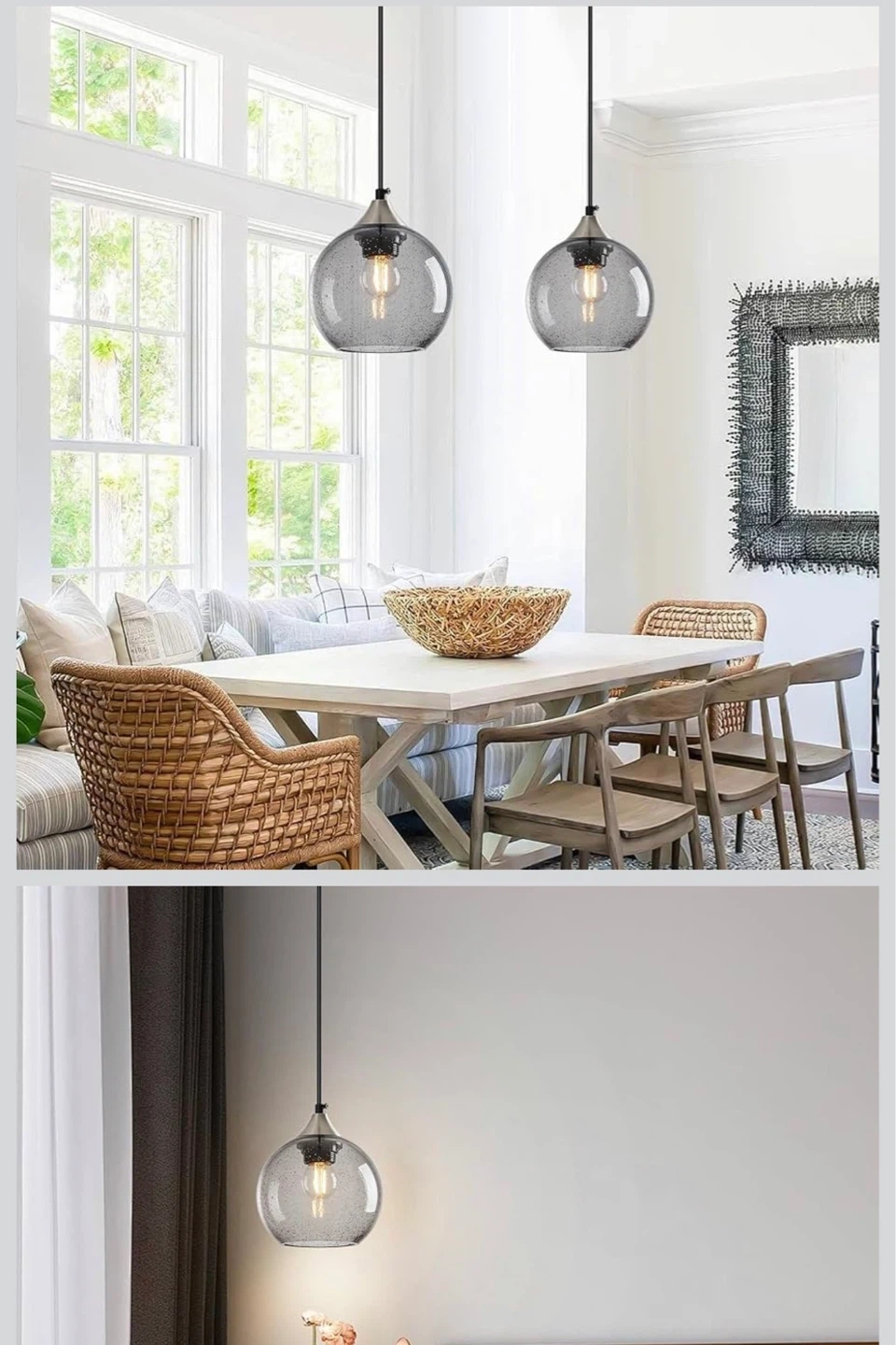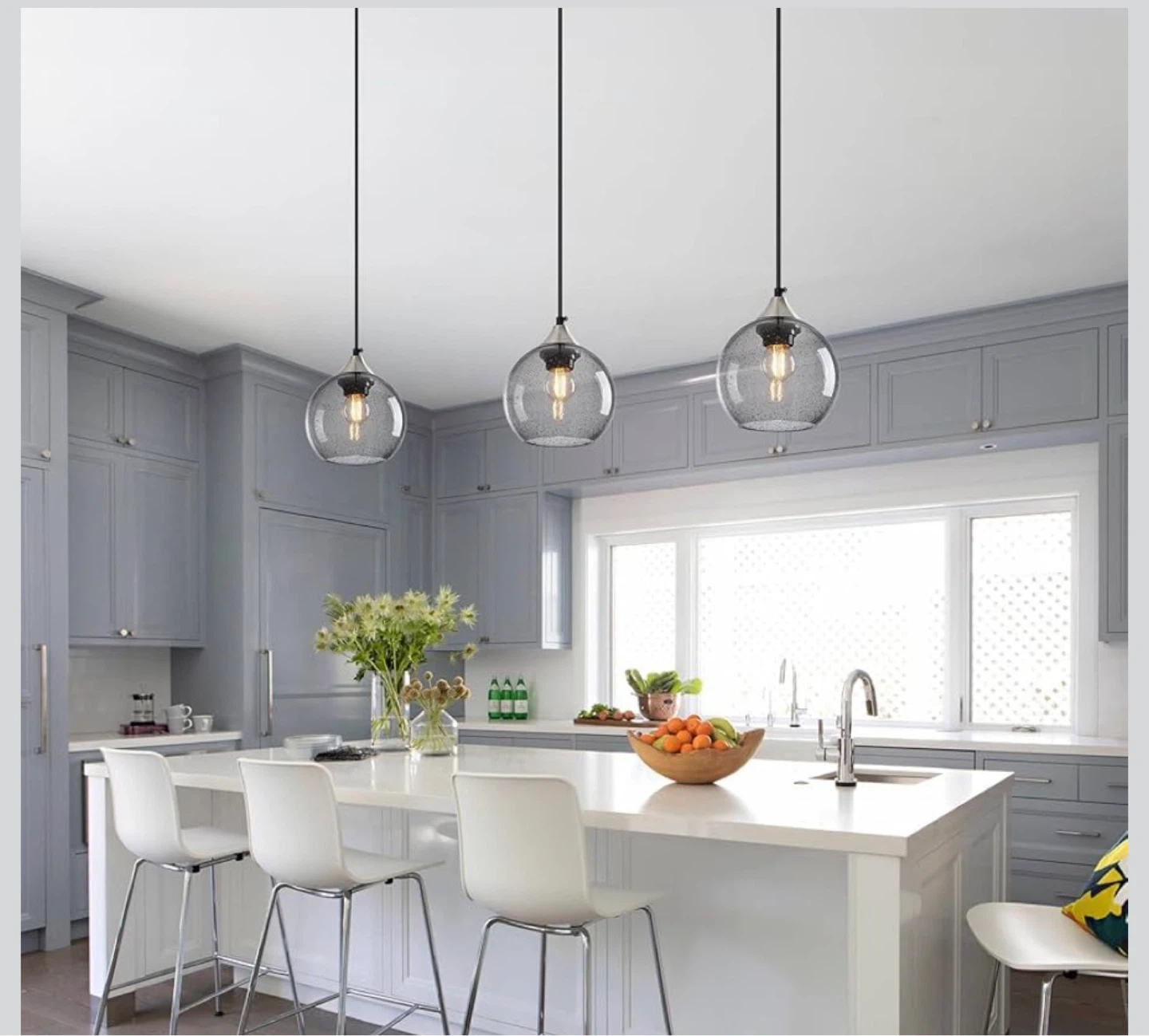 Brand New! LBSQJ Light Grey Glass Pendant Lights Kitchen Island Globe Pendant Light Fixtures Modern Pendant Lighting for Bedroom Living Dining Room Light Fixture (5.9 in, 3 Pack)