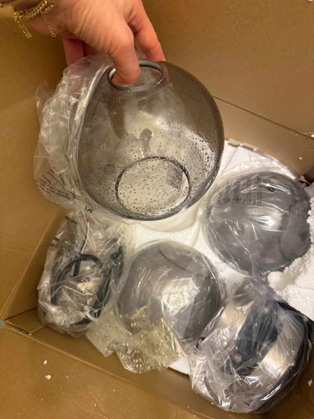 Brand New! 3 Pack Light Grey Glass Pendant Light