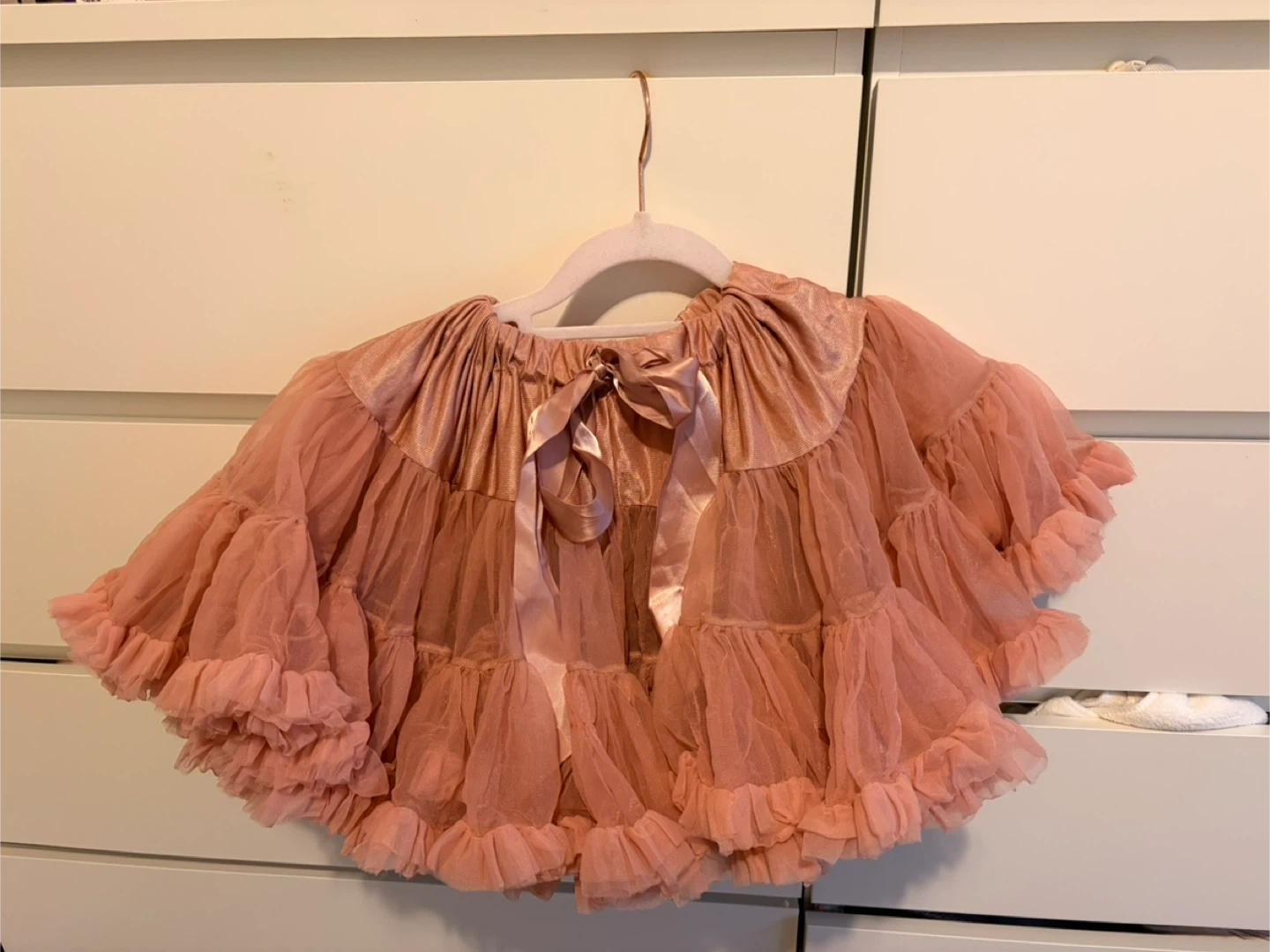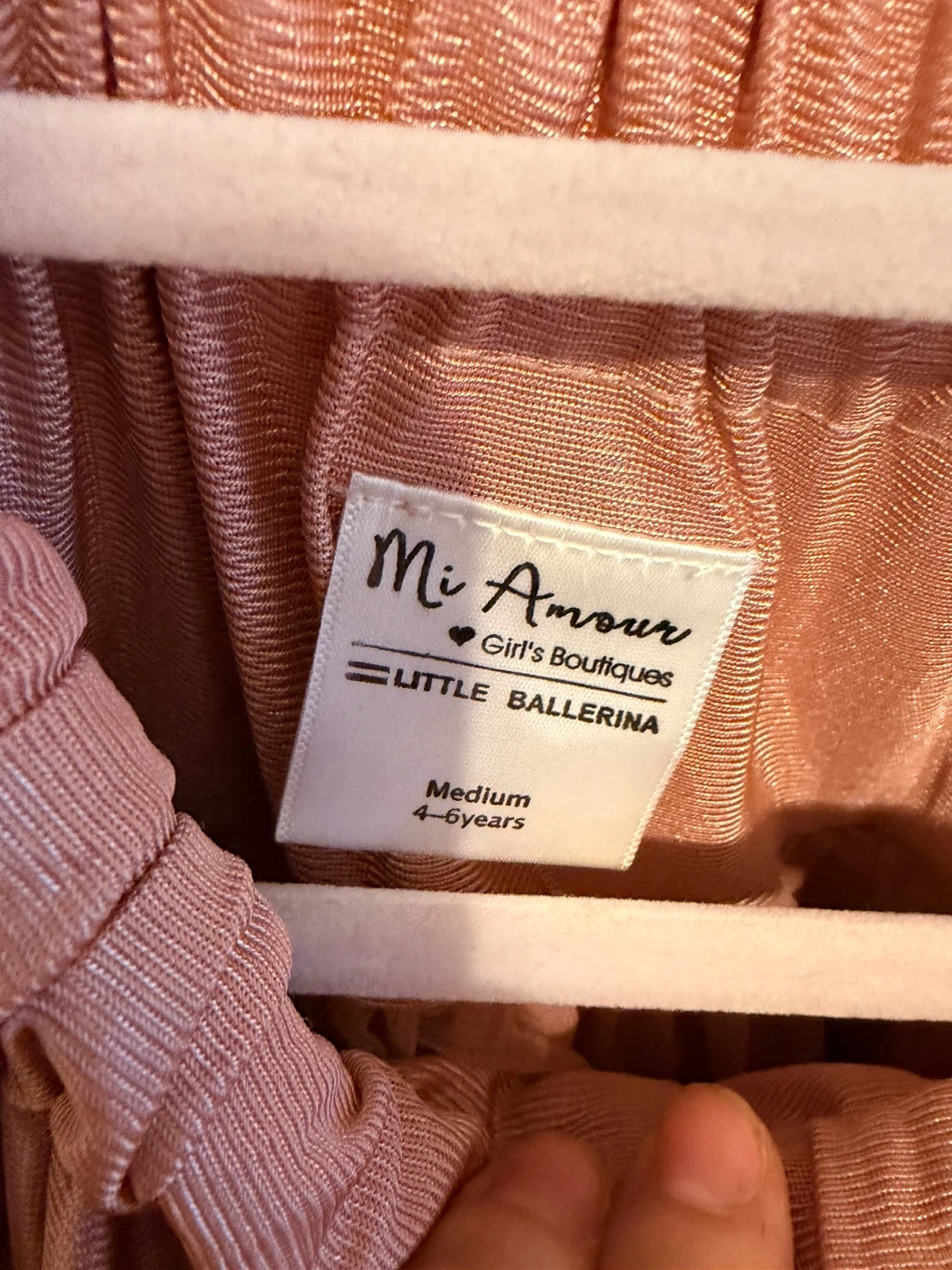 Special Tea Pink ruffled tutu dress. Mi Amour Little Ballerina line. Size Medium, fits 4-6 years. Lots of fluffy tulle layers. Has a cute ribbon tie detail.