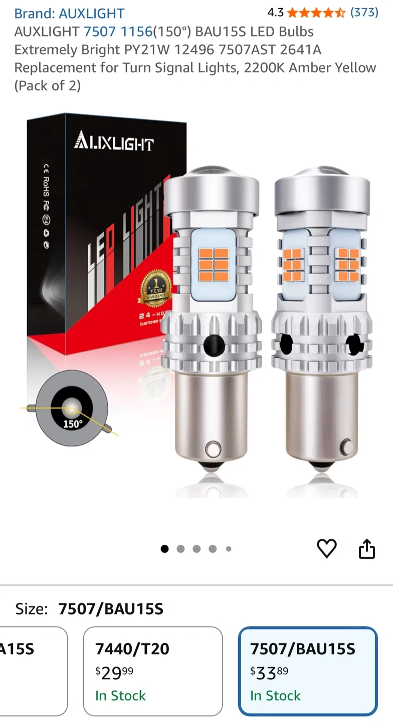 AUXLight 7507 1156 (150%) BAU15S Amber LED Bulbs (Pack of 2)