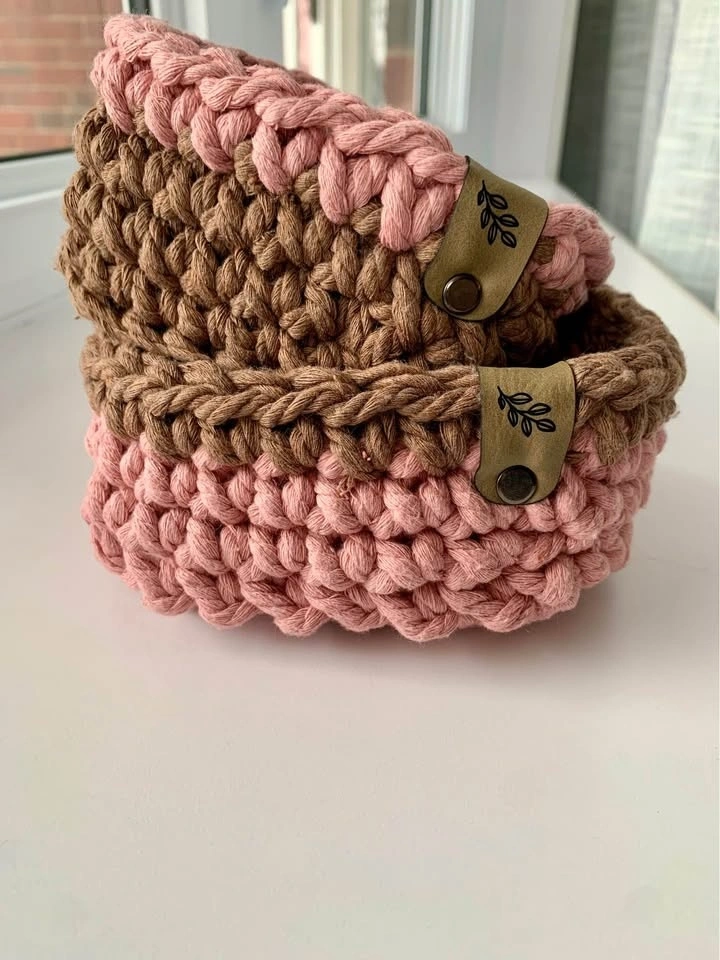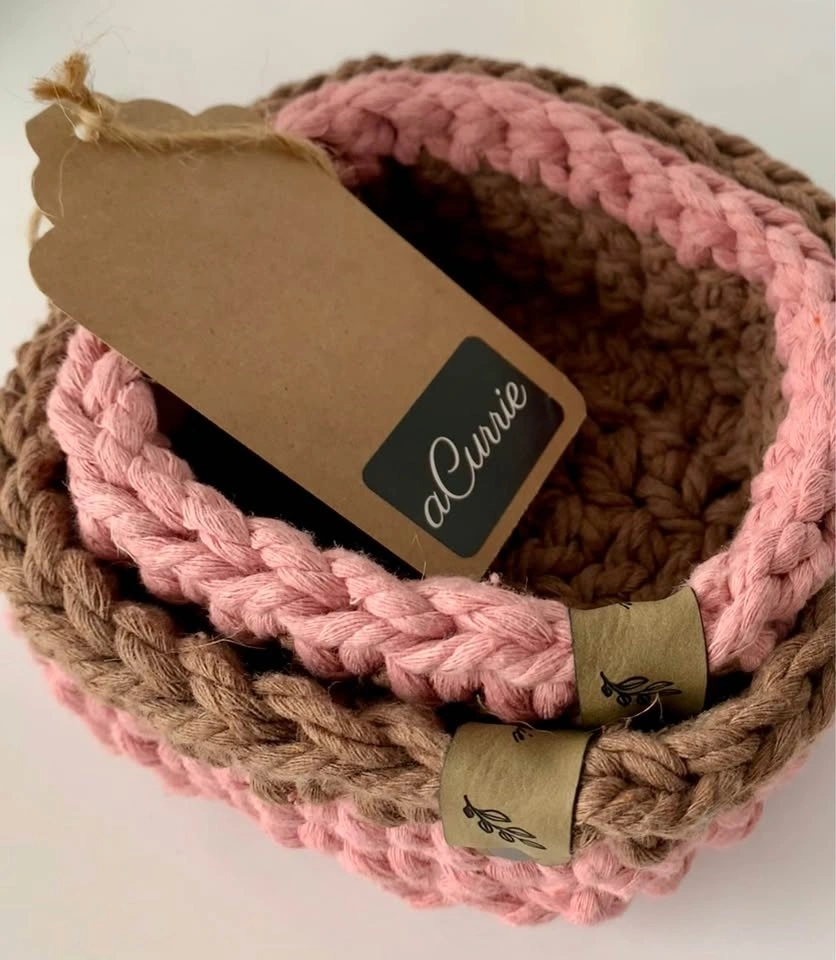 Baskets are made from either cotton cord, wool, or thick acrylic to withstand everyday use in beautiful coordinating colours.