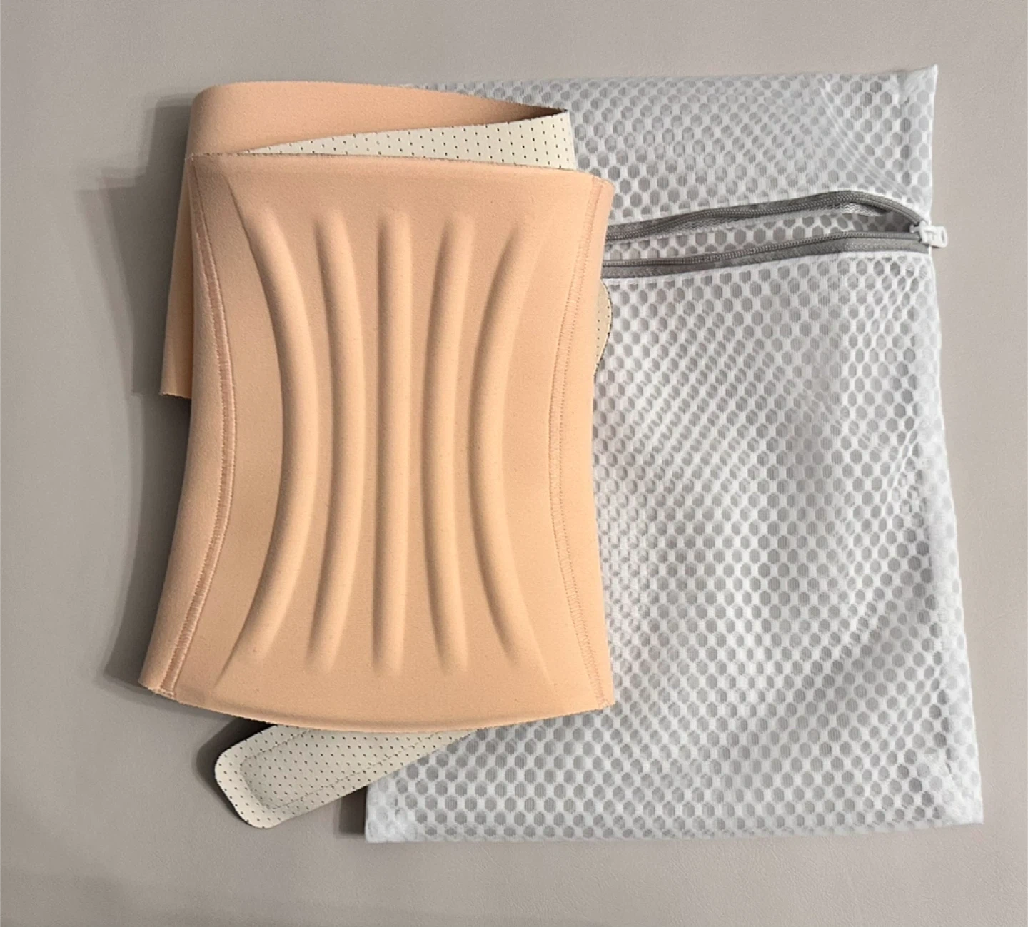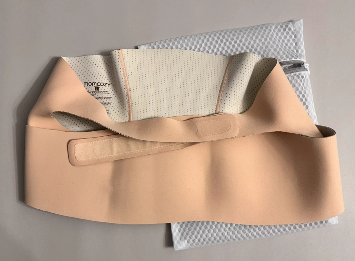 This Momcozy postpartum belly band is designed for support during pregnancy. It's made from a breathable, stretchy material for comfort. Includes a laundry bag for easy care.