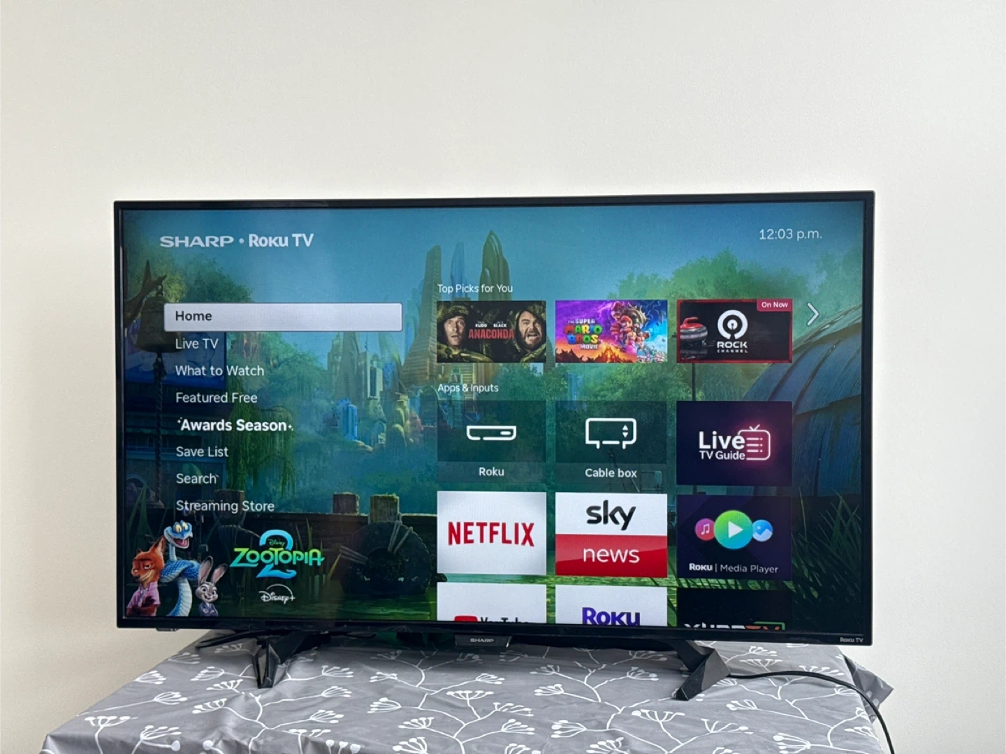 This is a SHARP Roku TV 43”. It provides access to streaming apps and live TV. It's great for home entertainment!
