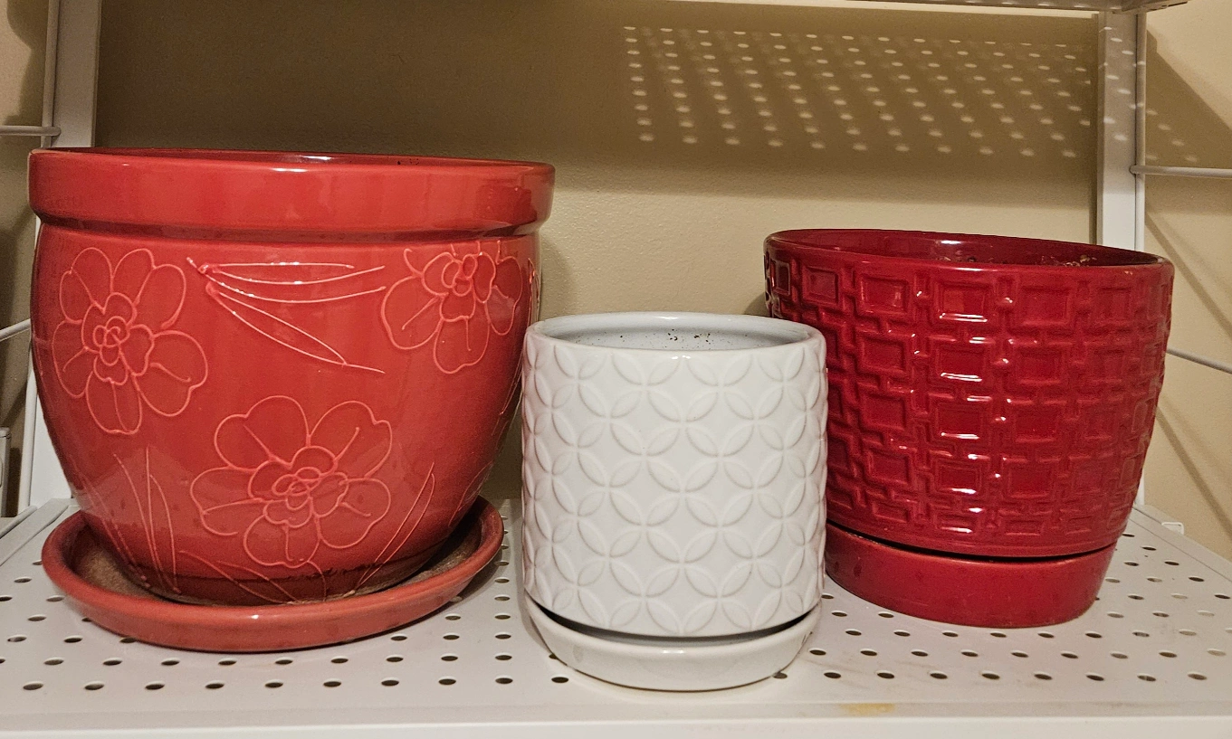 Multicolored ceramic pot set in assorted sizes/designs. Each pot includes a saucer. Display your plants beautifully for a warm, soothing environment 🪴
