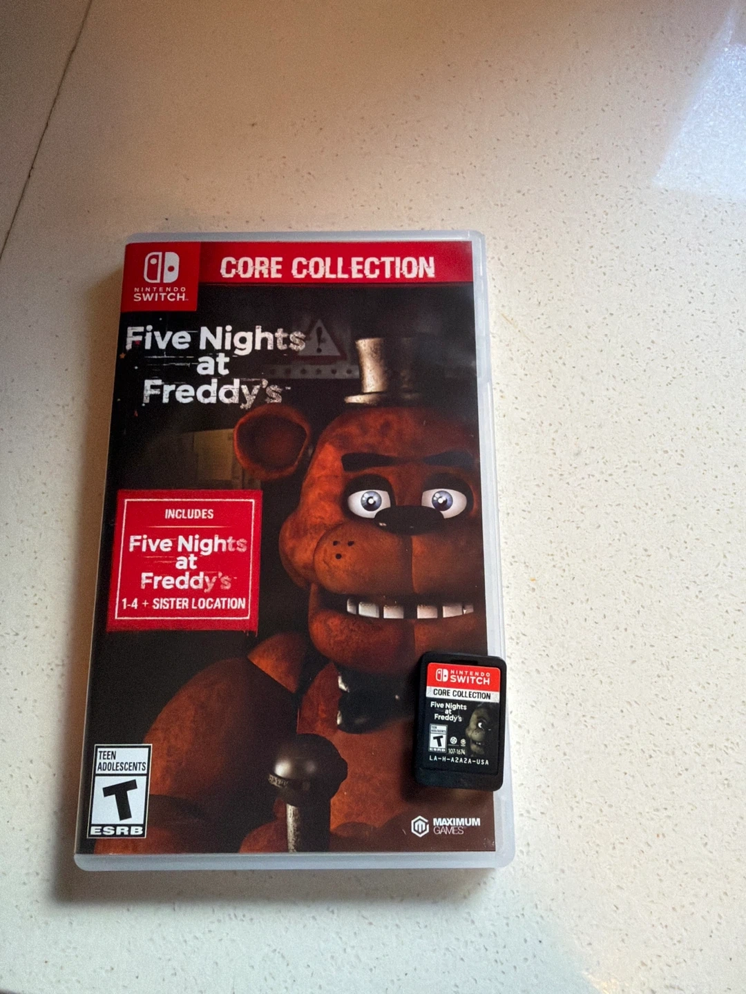 Five Nights at Freddy's Core Collection for Nintendo Switch. Includes Five Nights at Freddy's 1-4 and Sister Location. Rated T for Teen.