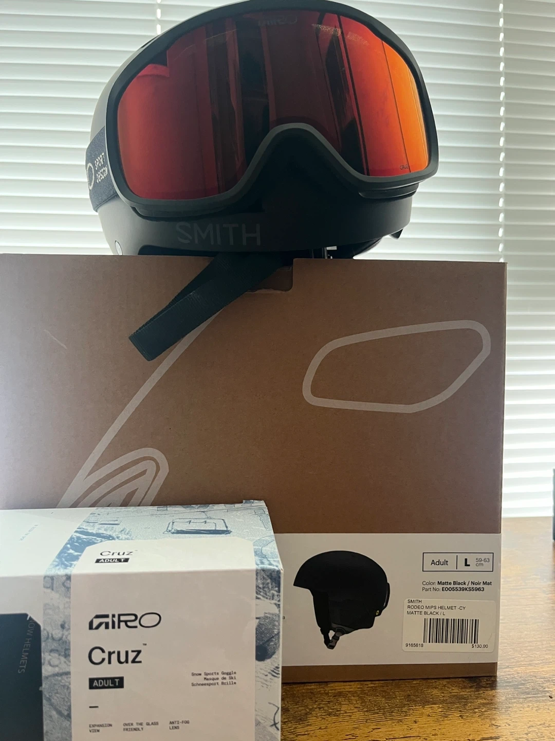 Selling a Smith Rodeo MIPS snow helmet in matte black. It's an adult size large, with a 59-63cm circumference. The helmet features MIPS technology for added safety. Includes original box and Giro Cruz goggles. Like new since I only used it couple of times.