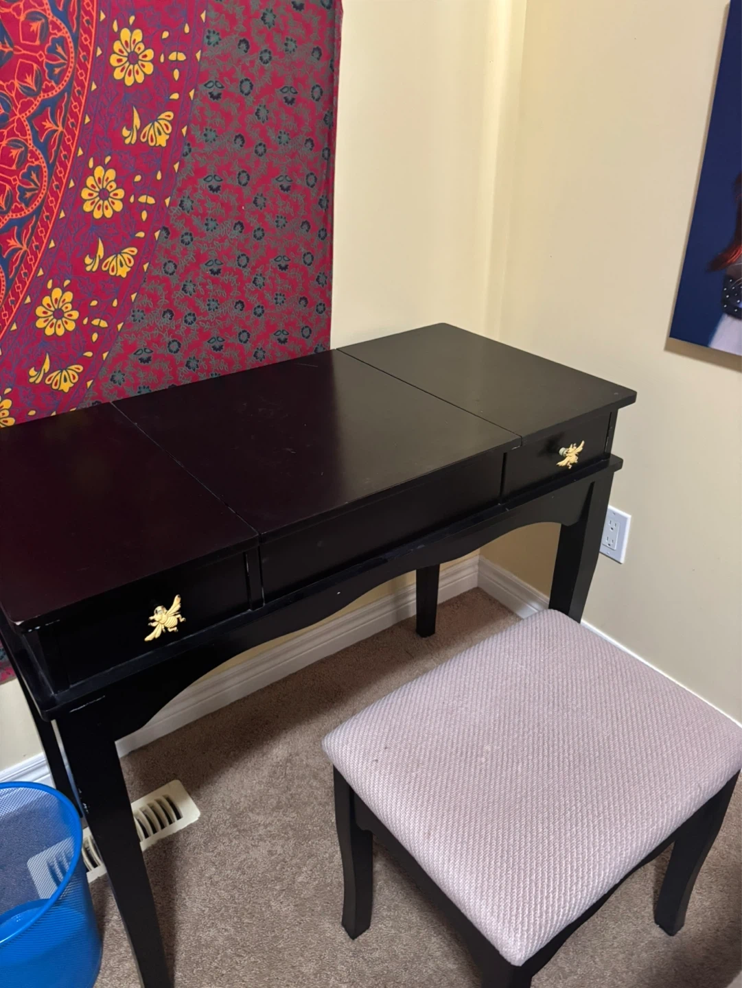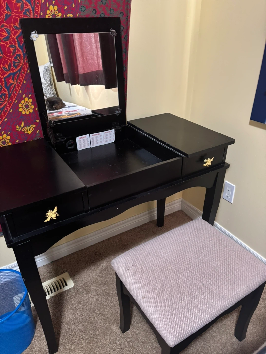 Black Vanity Desk with Mirror and Stool