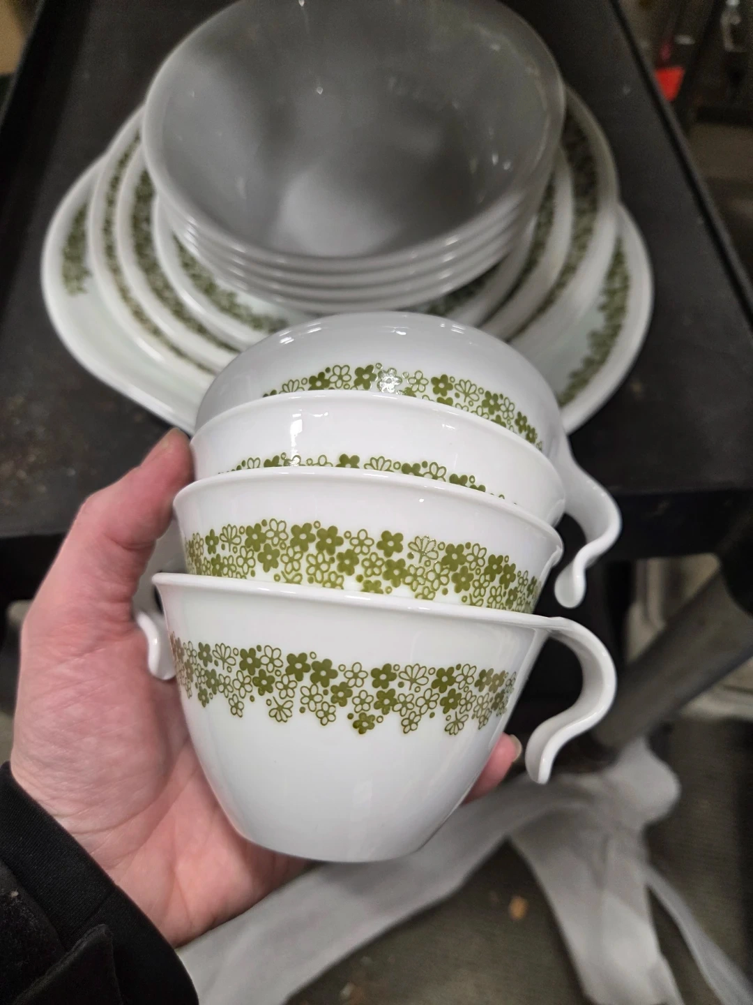 Matches coordinates the vintage pyrex spring blossom sets. I have butterfly gold and some old town blue onion too. Come by appointment to my storage spot. During 8am to 430pm by appointment.