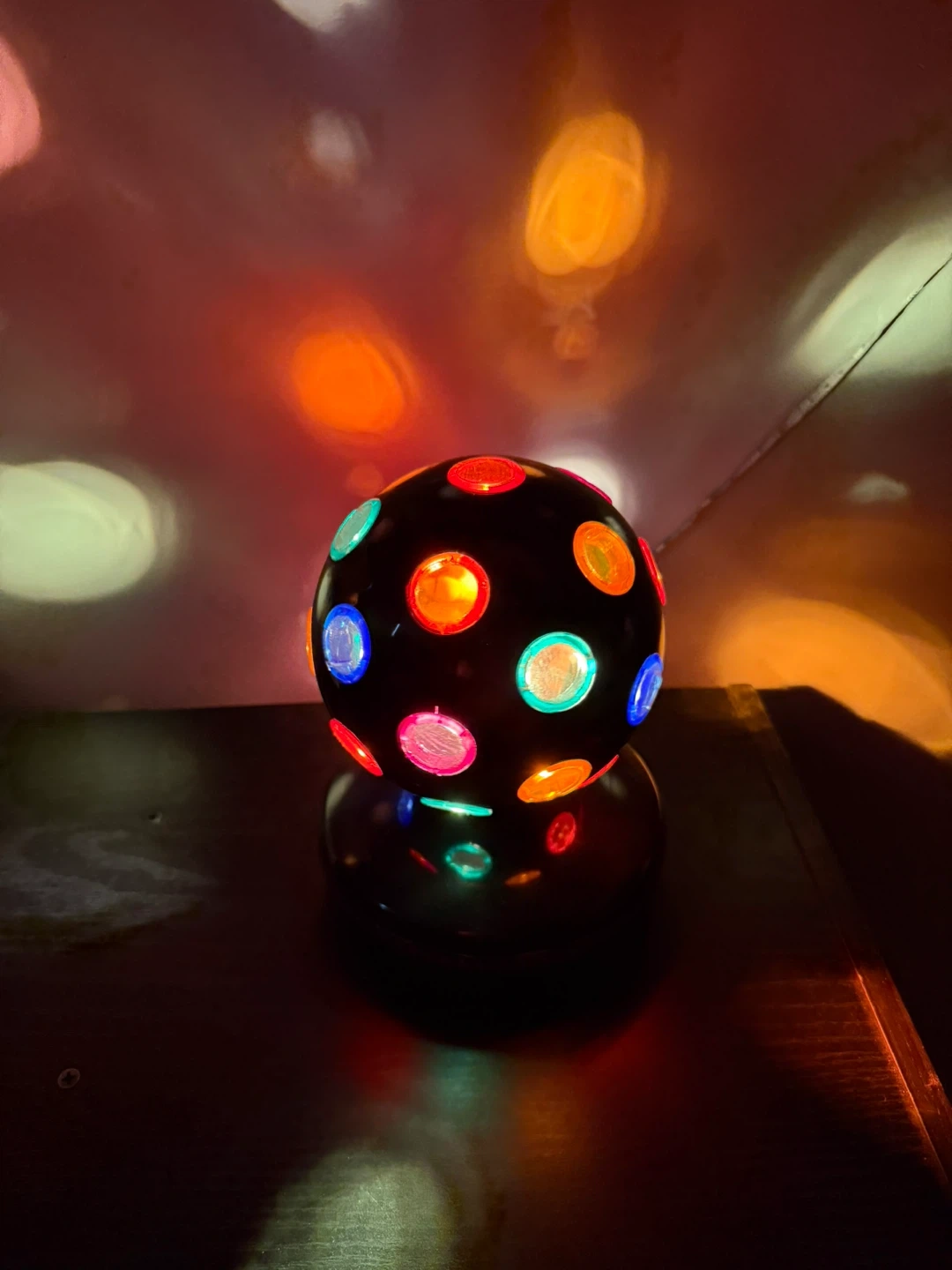 This disco ball light projects colourful patterns onto walls and ceilings. It's a fun addition to any party or gathering, creating a vibrant atmosphere! Easy to set up and use.