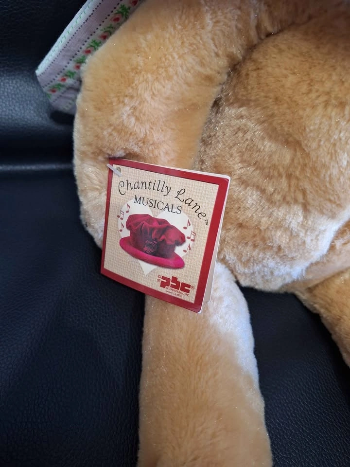 This Chantilly Lane Musical Ruthie Bear sings "On Top of The World" by The Carpenters. Approximately 17" tall. Requires 3 AA batteries (not included). From a smoke-free home.