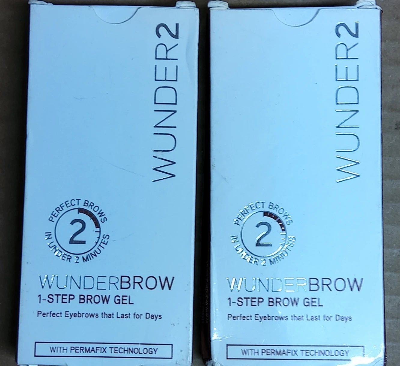 Two Wunder2 Wunderbrow 1-Step Brow Gels. Get perfect brows in under 2 minutes! Comes with Permafix Technology. These are for Black/Brown and Brunette shades.