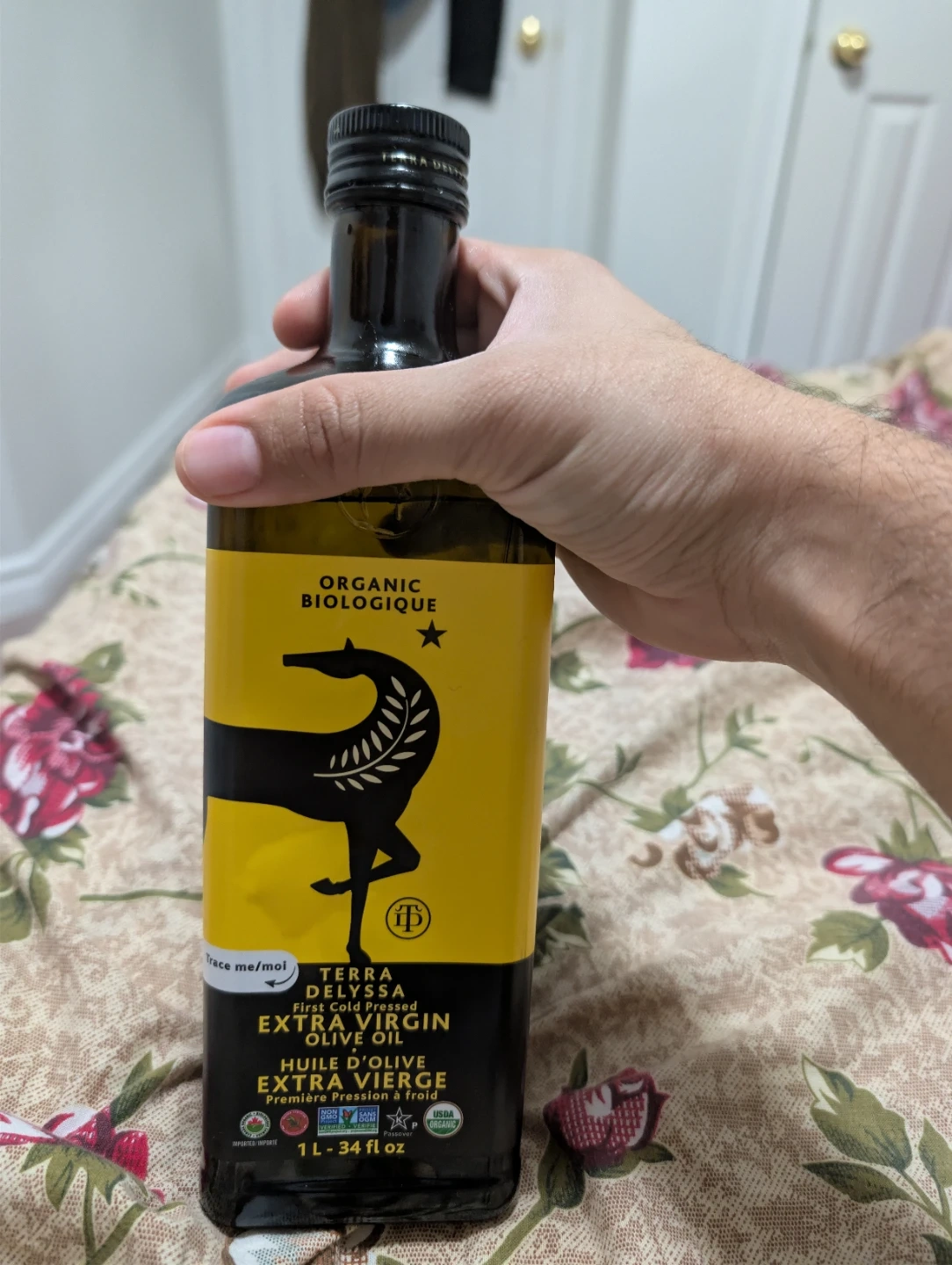 Discount for bulk Terra Delyssa Organic Extra Virgin Olive Oil. First cold pressed. 1 L - 34 fl oz. It's organic!