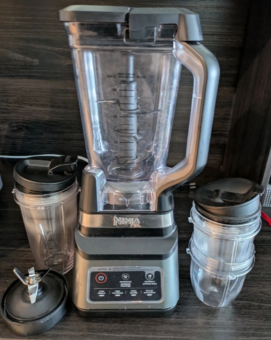 I'm selling a Ninja Professional Blender! It comes with Nutri Ninja cups, perfect for smoothies and individual servings. It's in great condition and ready to blend up your favourite recipes! Included are the blender, two Nutri Ninja cups, and an extra blade attachment.