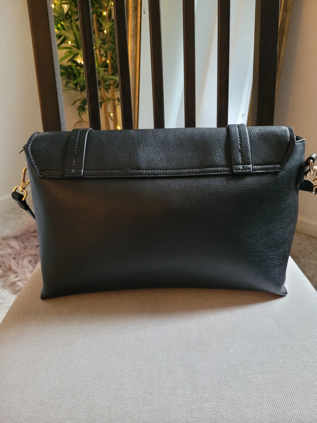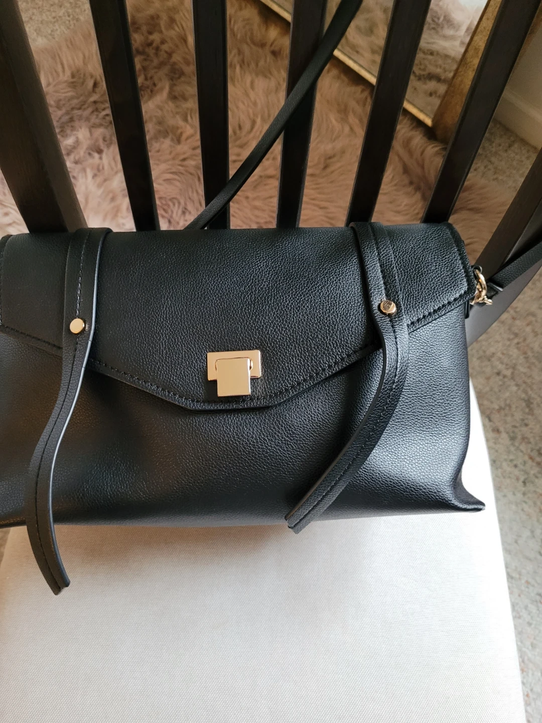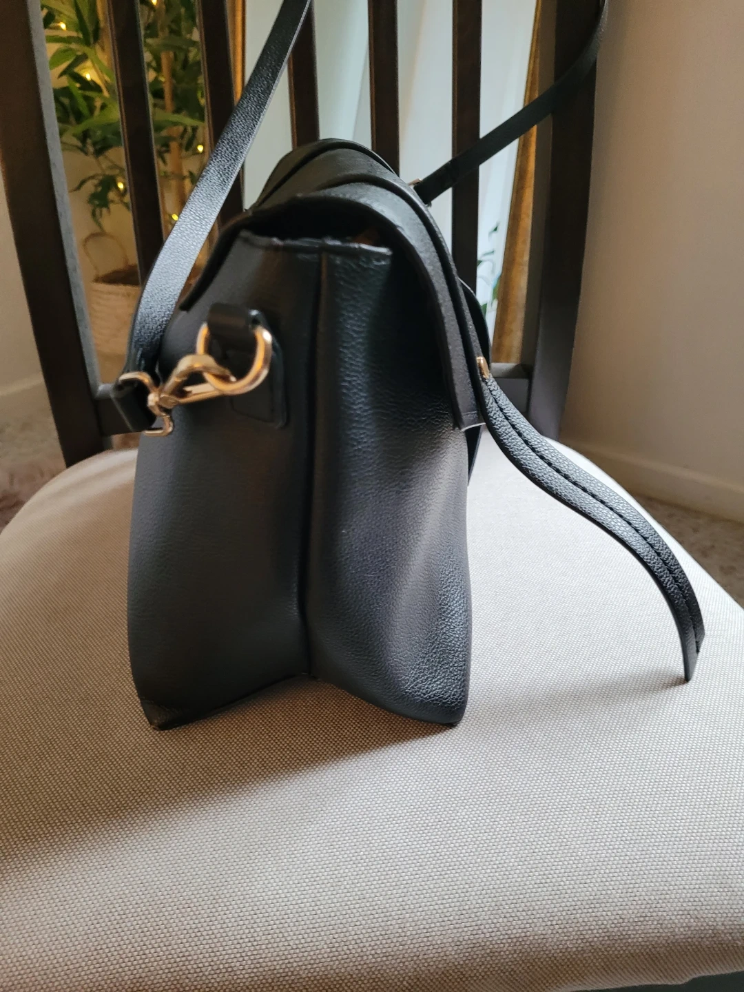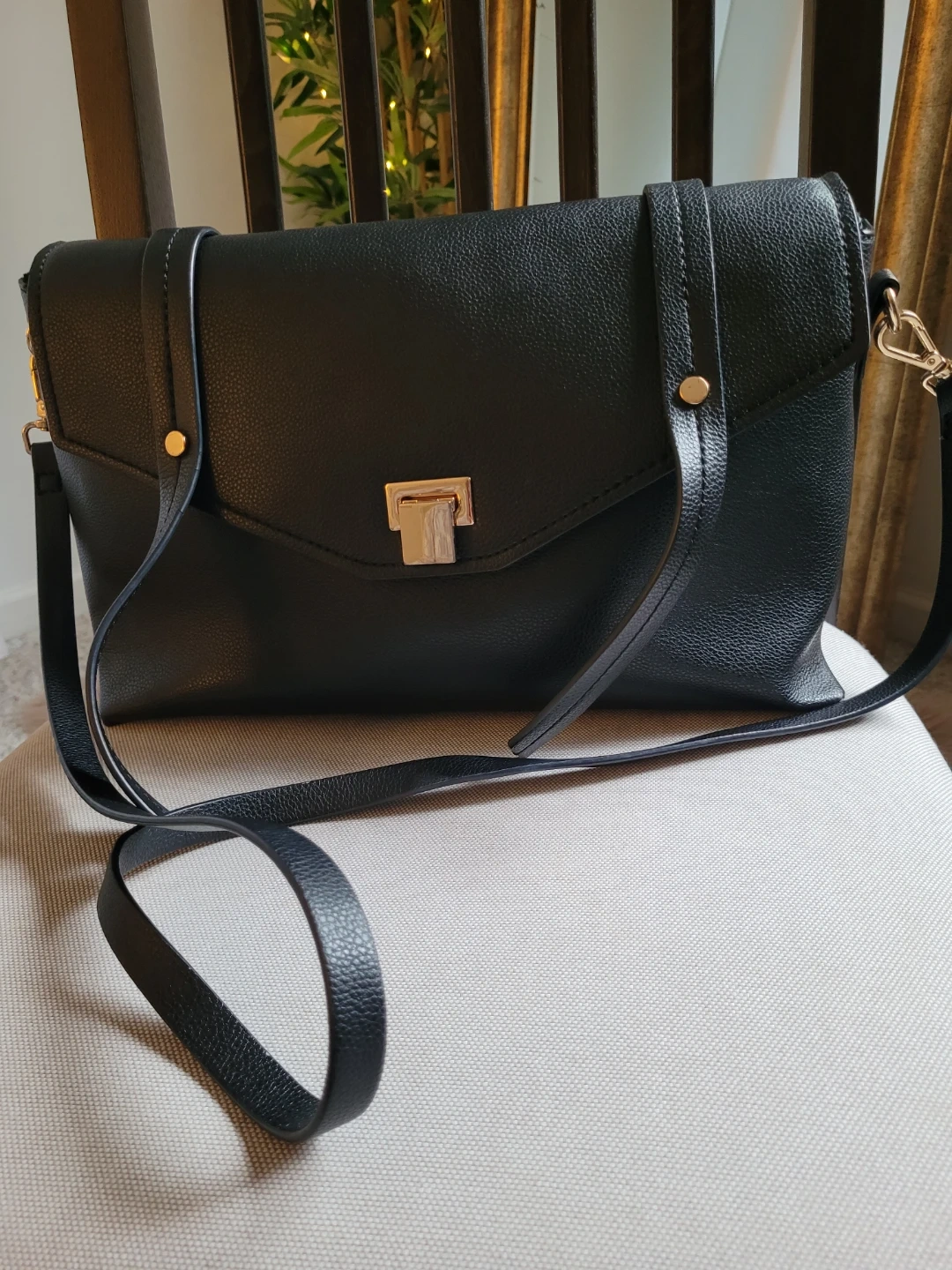 Black Faux Leather Crossbody Bag with Gold Hardware