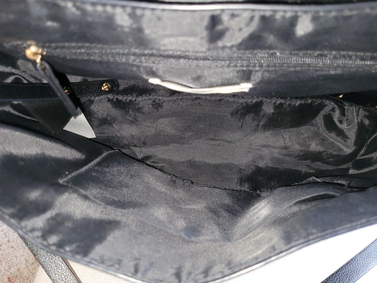 This chic black crossbody bag features a textured faux leather finish and stylish gold hardware. This bag is perfect for carrying your essentials on the go! From H&M and is in excellent condition.