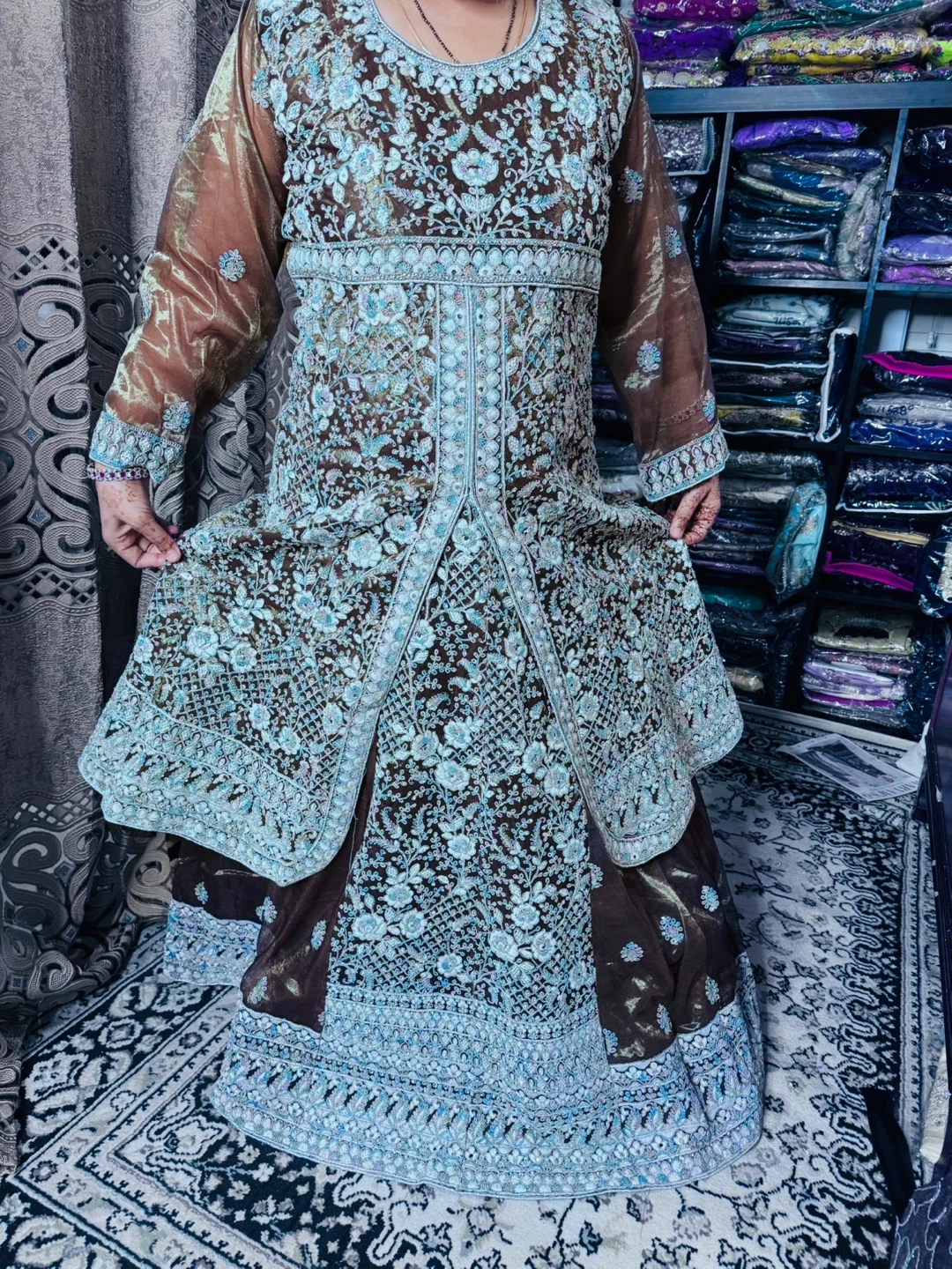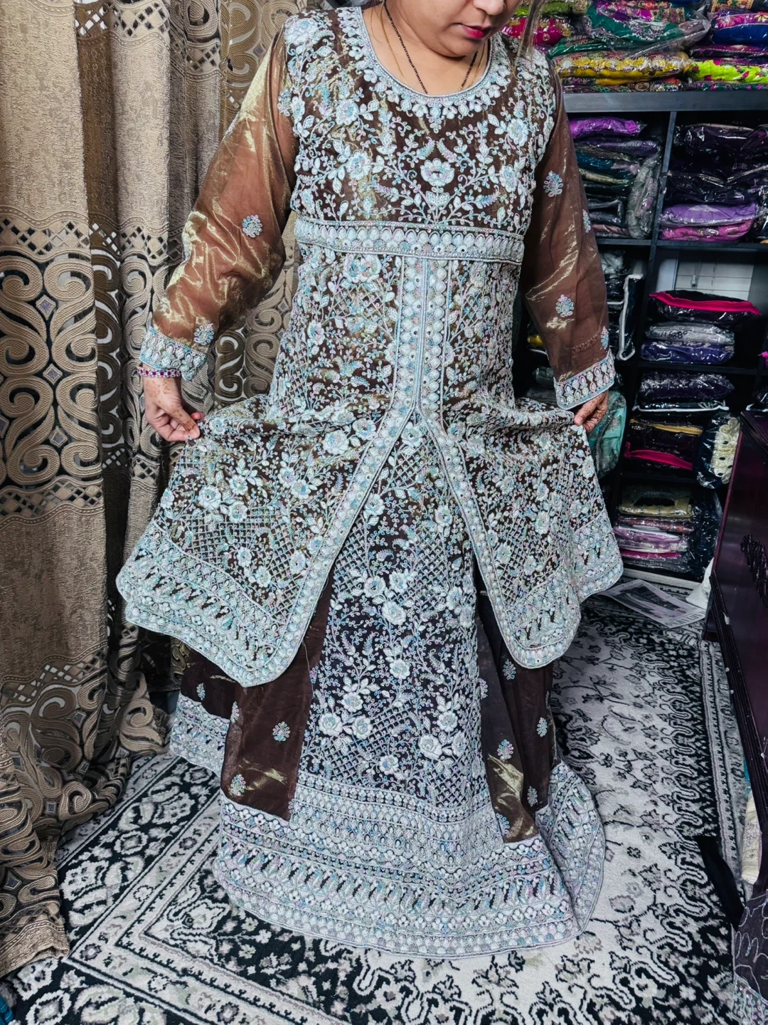 Brown heavy work lehanga