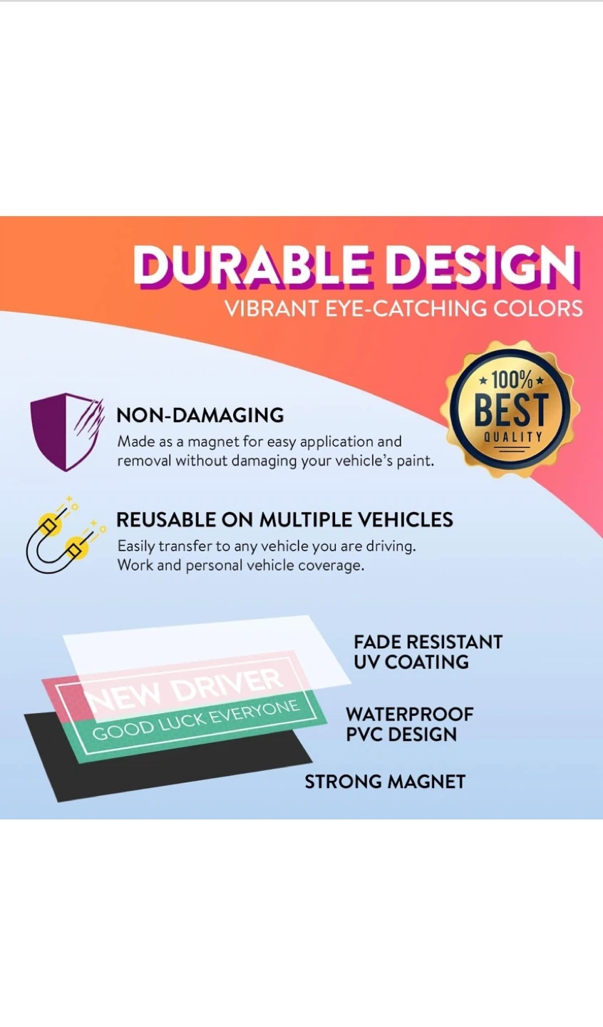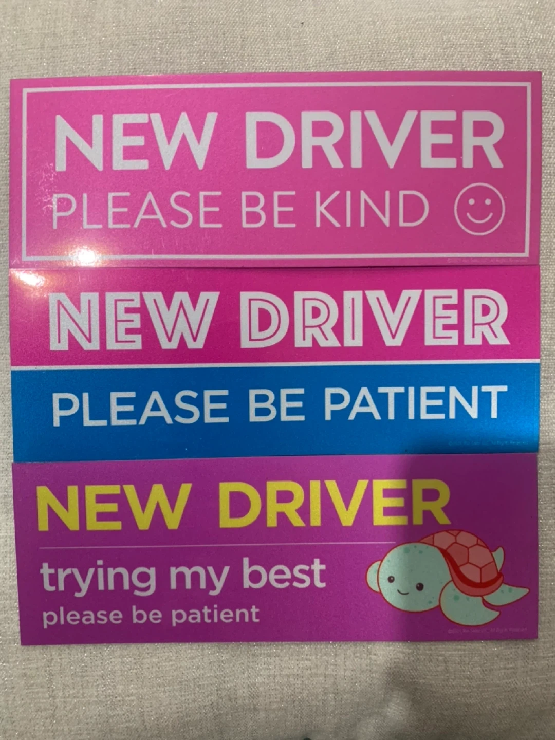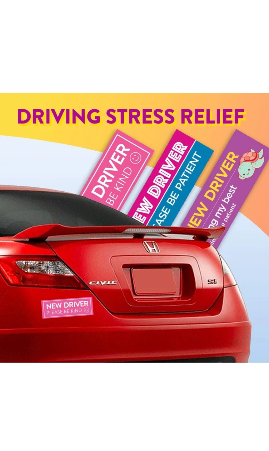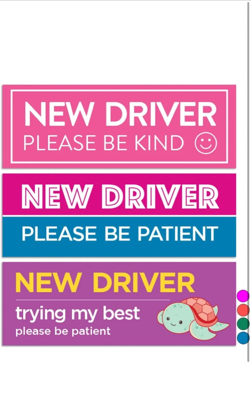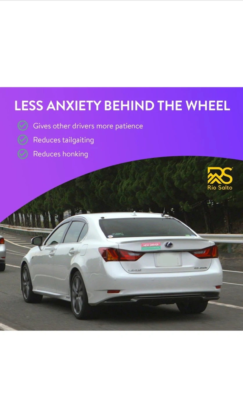 Selling a new 4-pack of Rio Salto magnets and stickers. These are perfect for new drivers and designed to encourage patience and kindness from other drivers on the road. They help reduce anxiety behind the wheel by giving other drivers more patience and reducing tailgating and honking