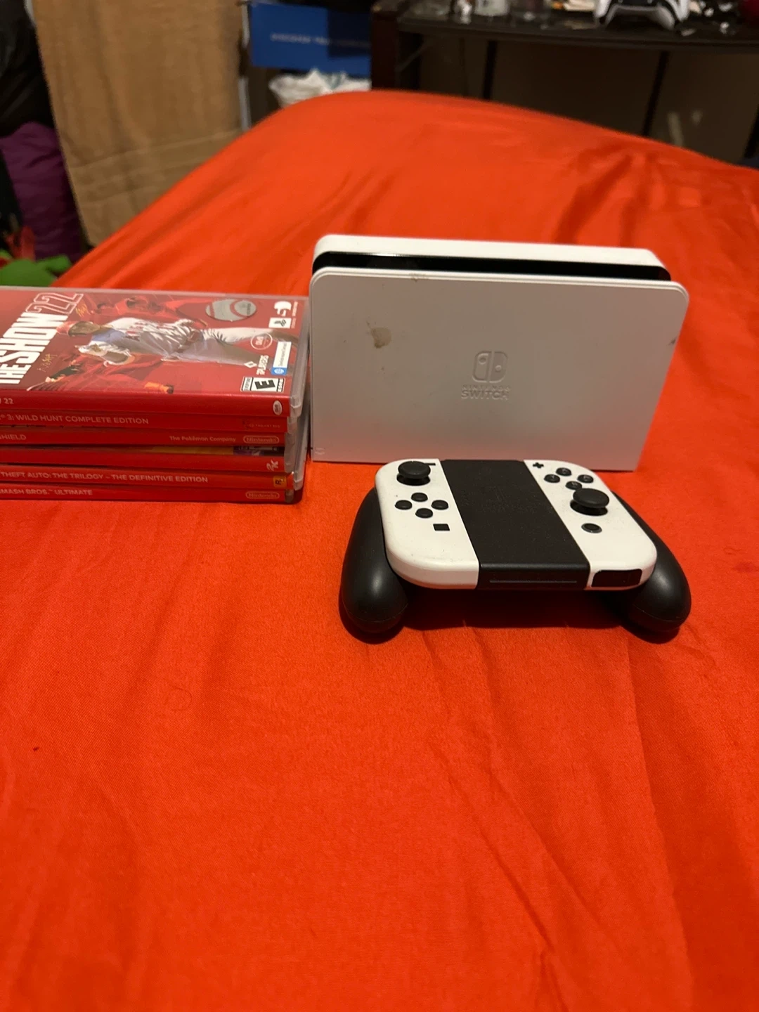 Selling a Nintendo Switch OLED model! Comes with the console, joy-cons, and a selection of games. Perfect for gaming on the go or at home!