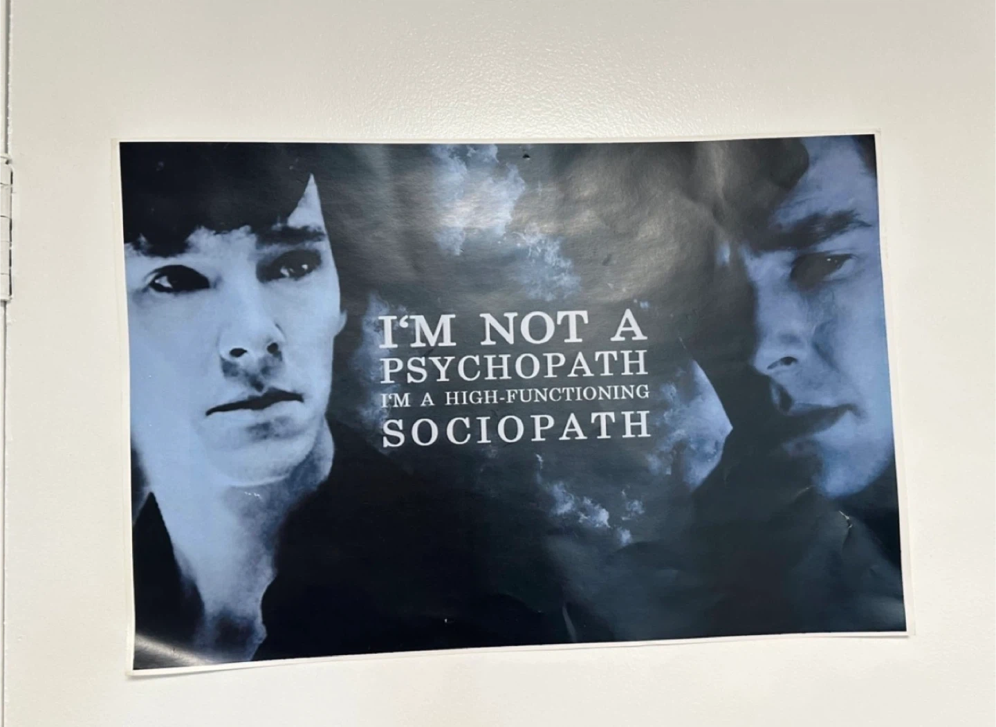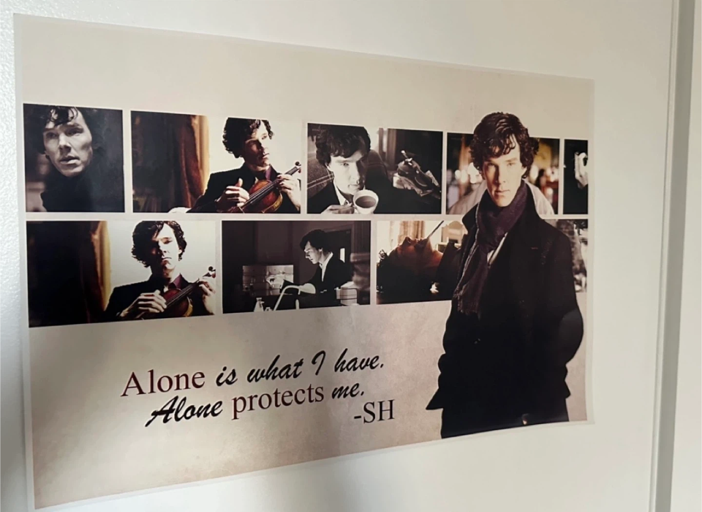 A collection of fan posters featuring Benedict Cumberbatch as Sherlock Holmes and Peter Dinklage as Tyrion Lannister. One poster has the quote 'Why can't people just think?', another displays 'HOPE' with Tyrion's image. A third poster showcases multiple images of Sherlock with the quote 'Alone is what I have. Alone protects me. -SH'. The final poster features Sherlock and another character with the text 'I'M NOT A PSYCHOPATH I'M A HIGH-FUNCTIONING SOCIOPATH'.