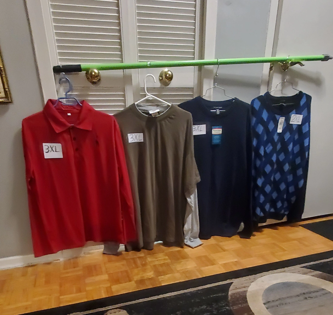Men's long sleeve shirts. Sizes range from XL to 3XL. Assorted colours and styles. Good condition.