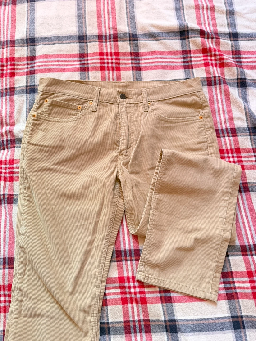 Classic Levi's corduroy pants in a tan colour. These are a men's size 32 waist and 30 inseam. Made with comfortable corduroy material.