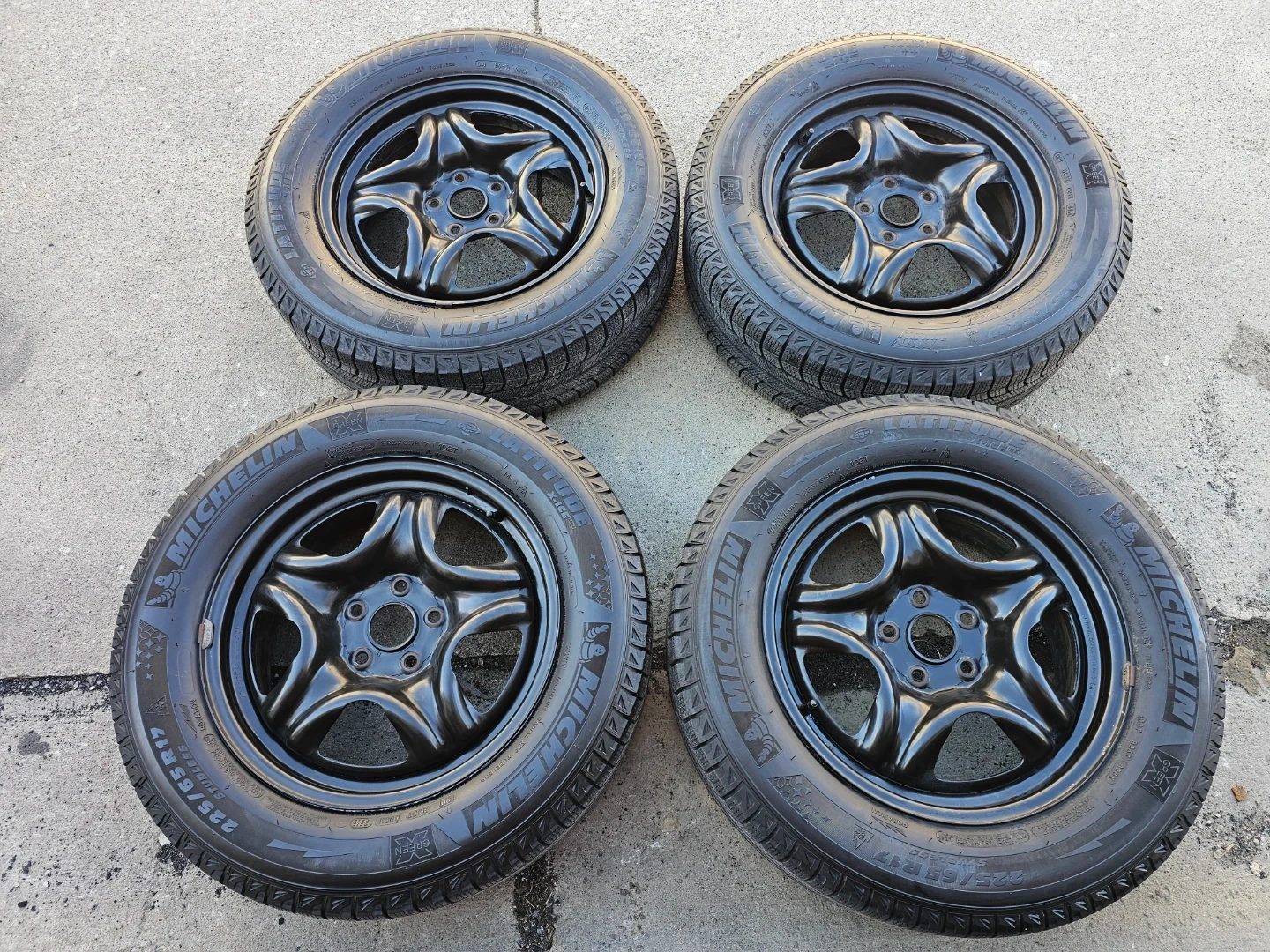 Set of 4 17" Michellin winter tires on steel rims used on Toyota rav4 225/65 R17. Rims and tires are in good shape, tires still have decent amount of thread left on them