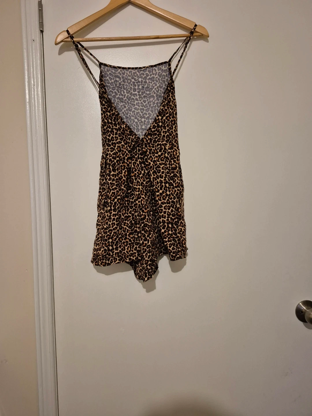 Cute leopard print romper from American Apparel. It's a size medium and made in the USA. Great for summer wear!