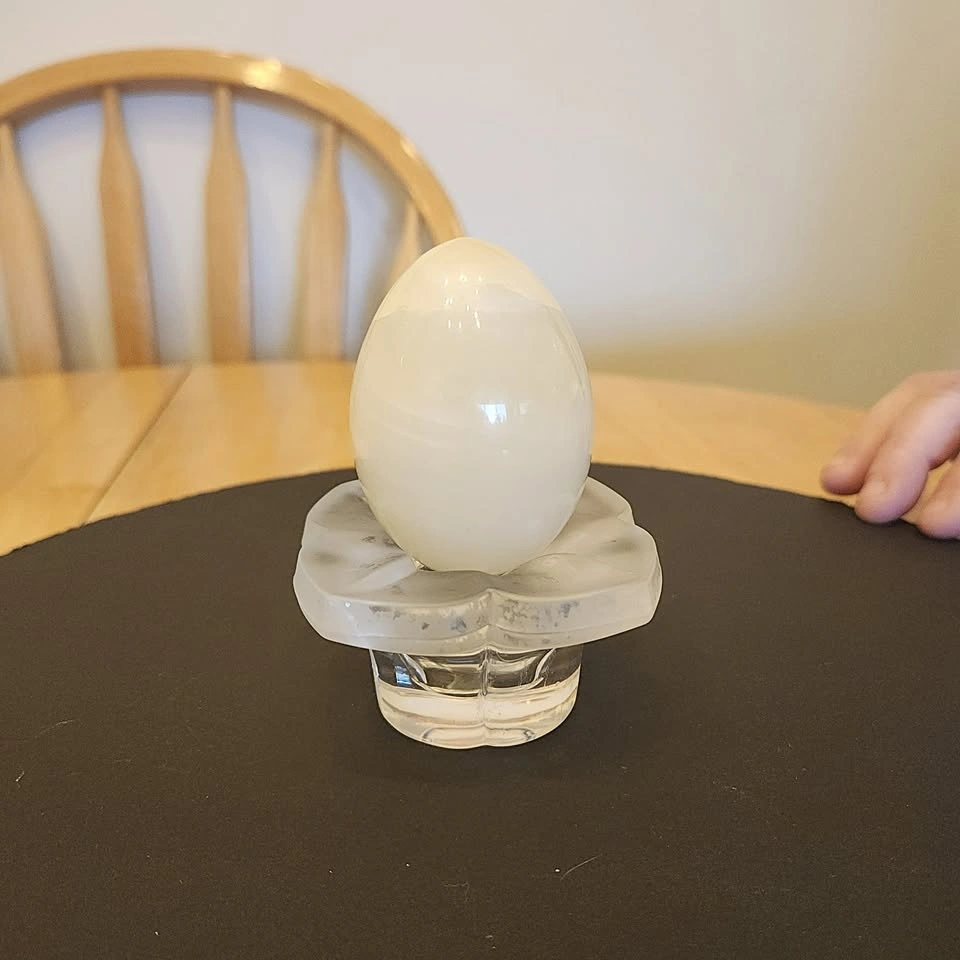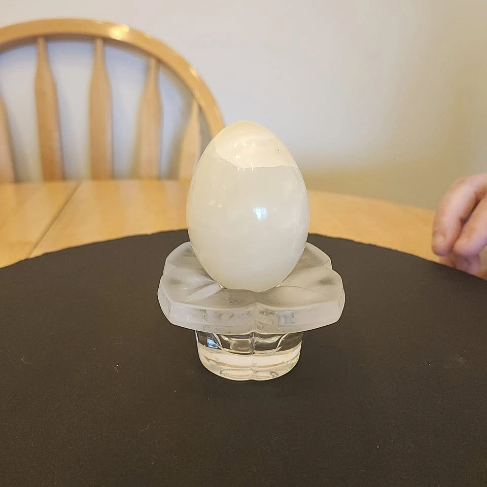 Solid onyx carving in an egg shape. Onyx is said to be a protective and grounding stone, bringing calm to you and the environment. As home decor it may help to infuse your living space with the same attributes.
