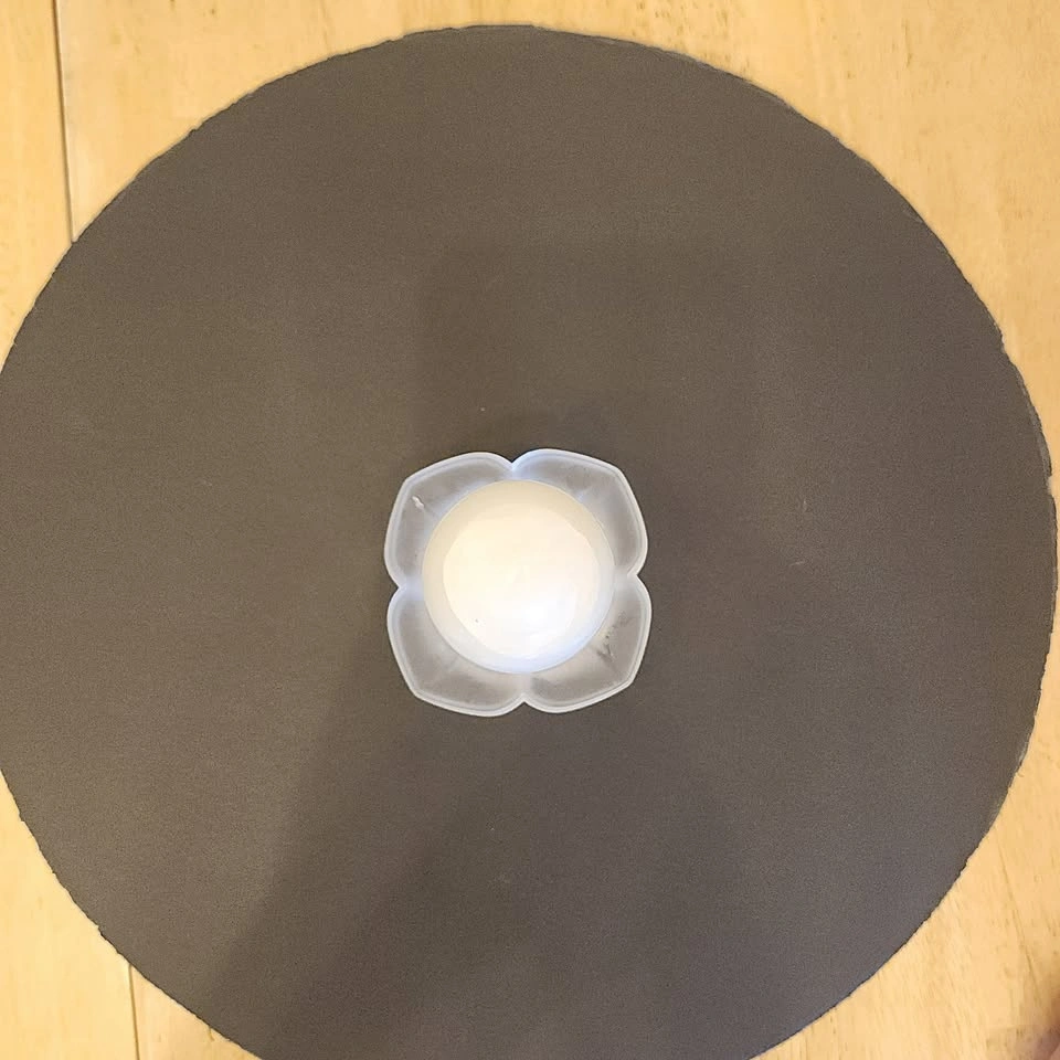 A petaled glass holder, which is not onyx, is included. The petals are frosted while the base is clear.