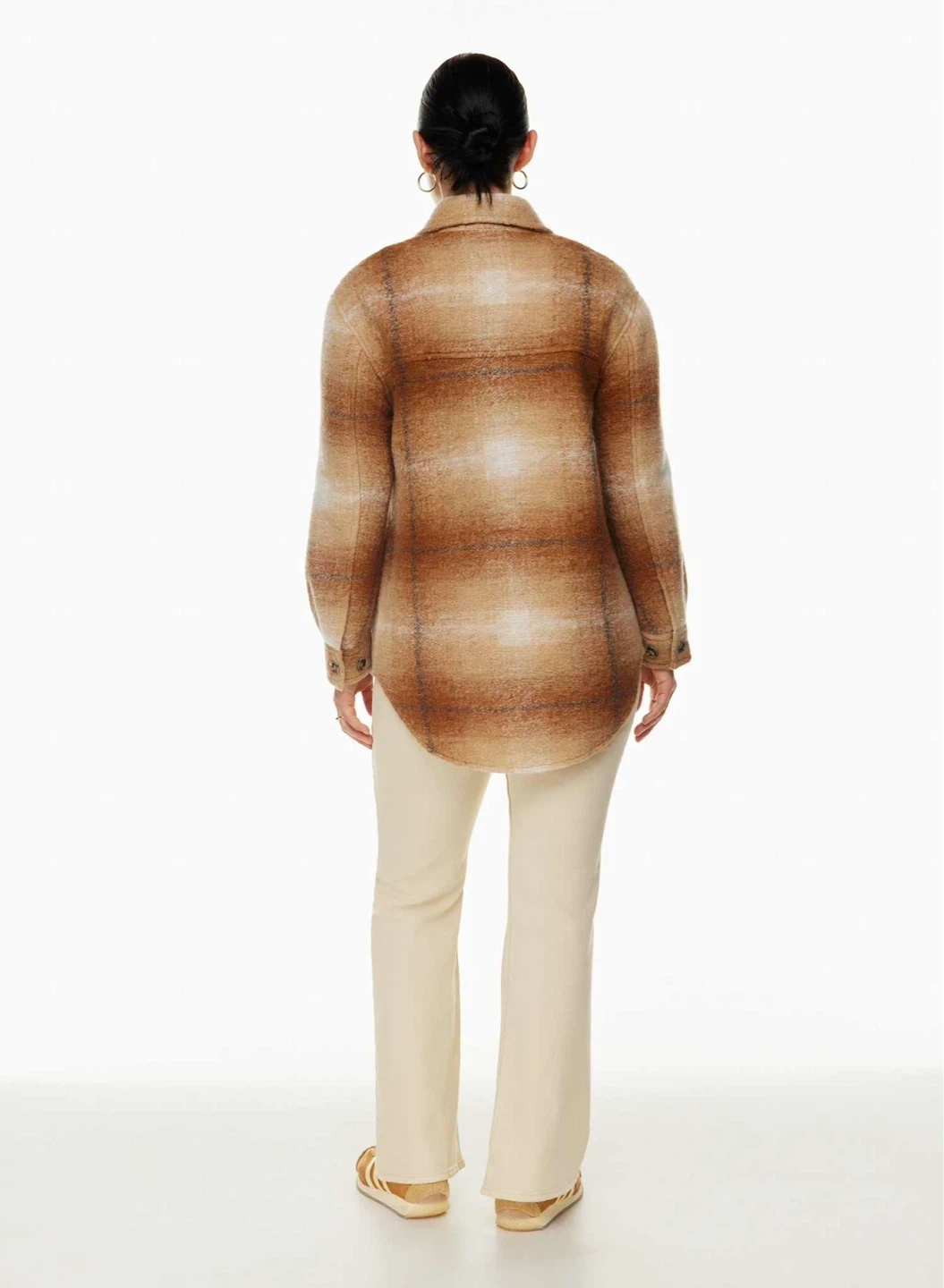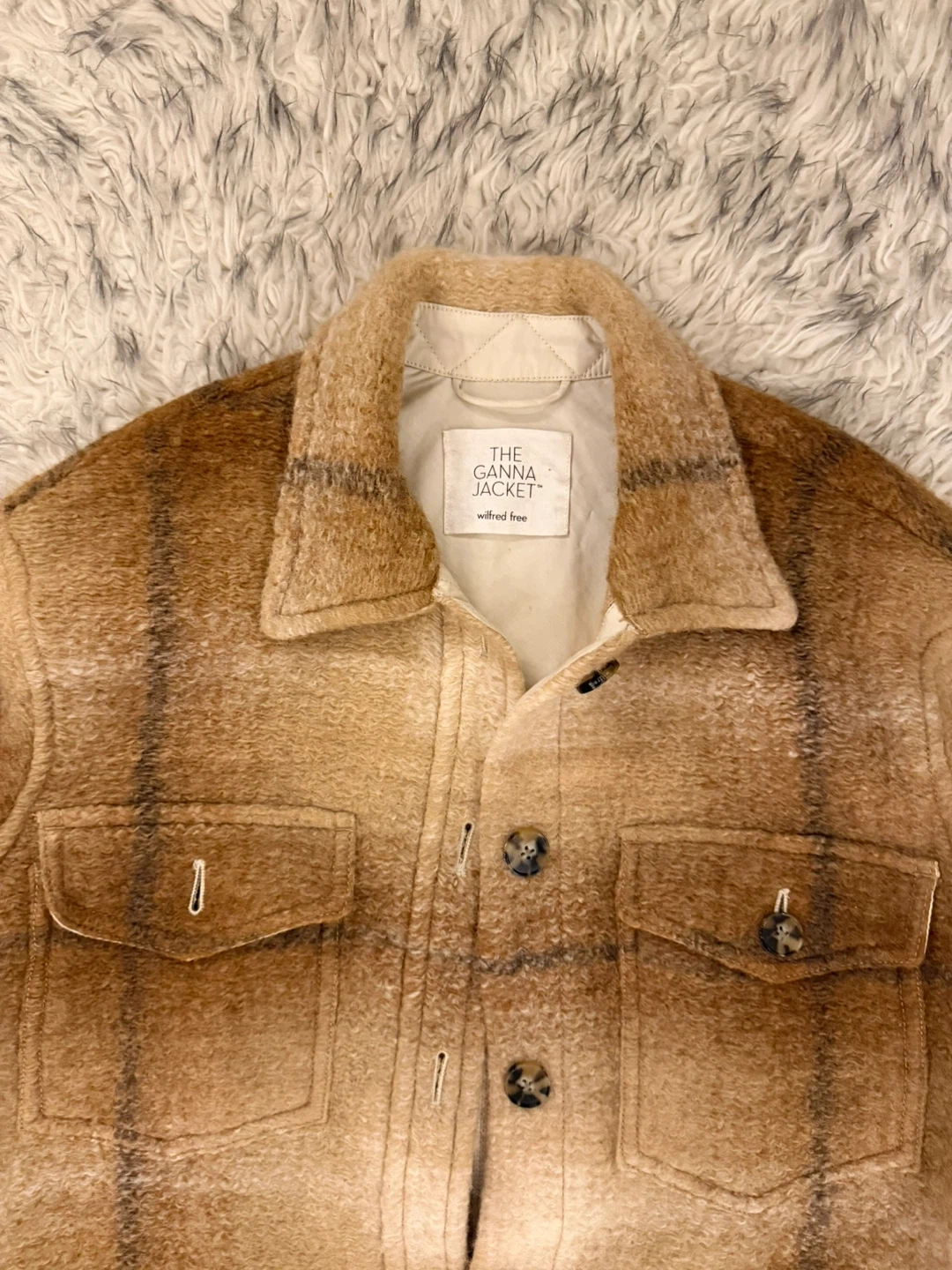 Keep your jacket on. Inside, outside — everywhere. A Wilfred Free classic beloved for its relaxed silhouette and all-season versatility, The Ganna™ delivers the relaxed silhouette of a shirt with the warmth of a jacket, transcending the typical rules of indoor/outdoor style. It's crafted with dropped shoulders, patch pockets and a rounded hem for throw-over-anything ease. It's tailored with warm and luxurious felted wool from Italy. This version comes in a yarn-dyed plaid pattern that's been woven in, as opposed to printed on, for a more dimensional look.