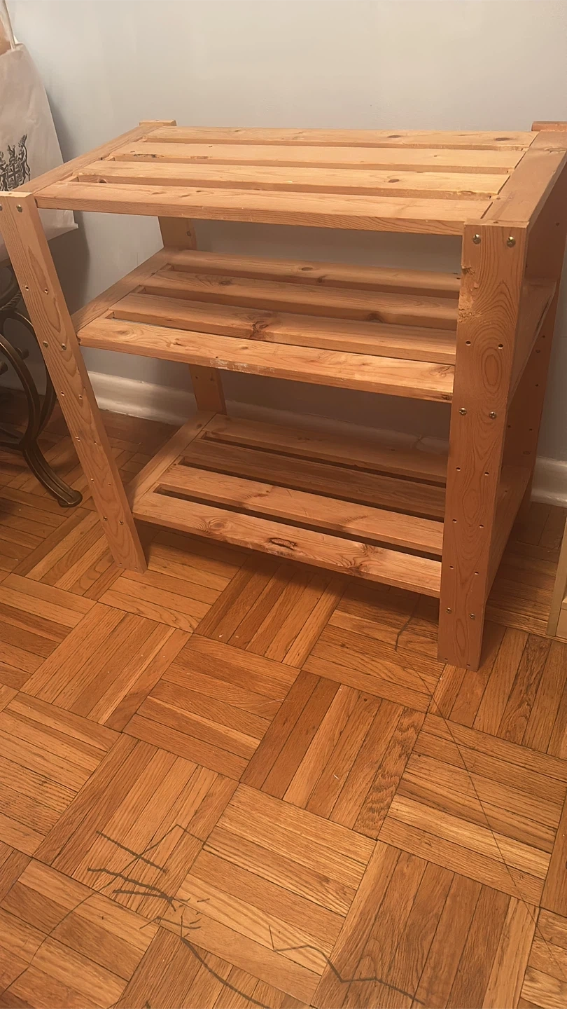 Wooden kitchen/ closet storage shelve. It just need to be reinforced ( I do not have any kind of toos)