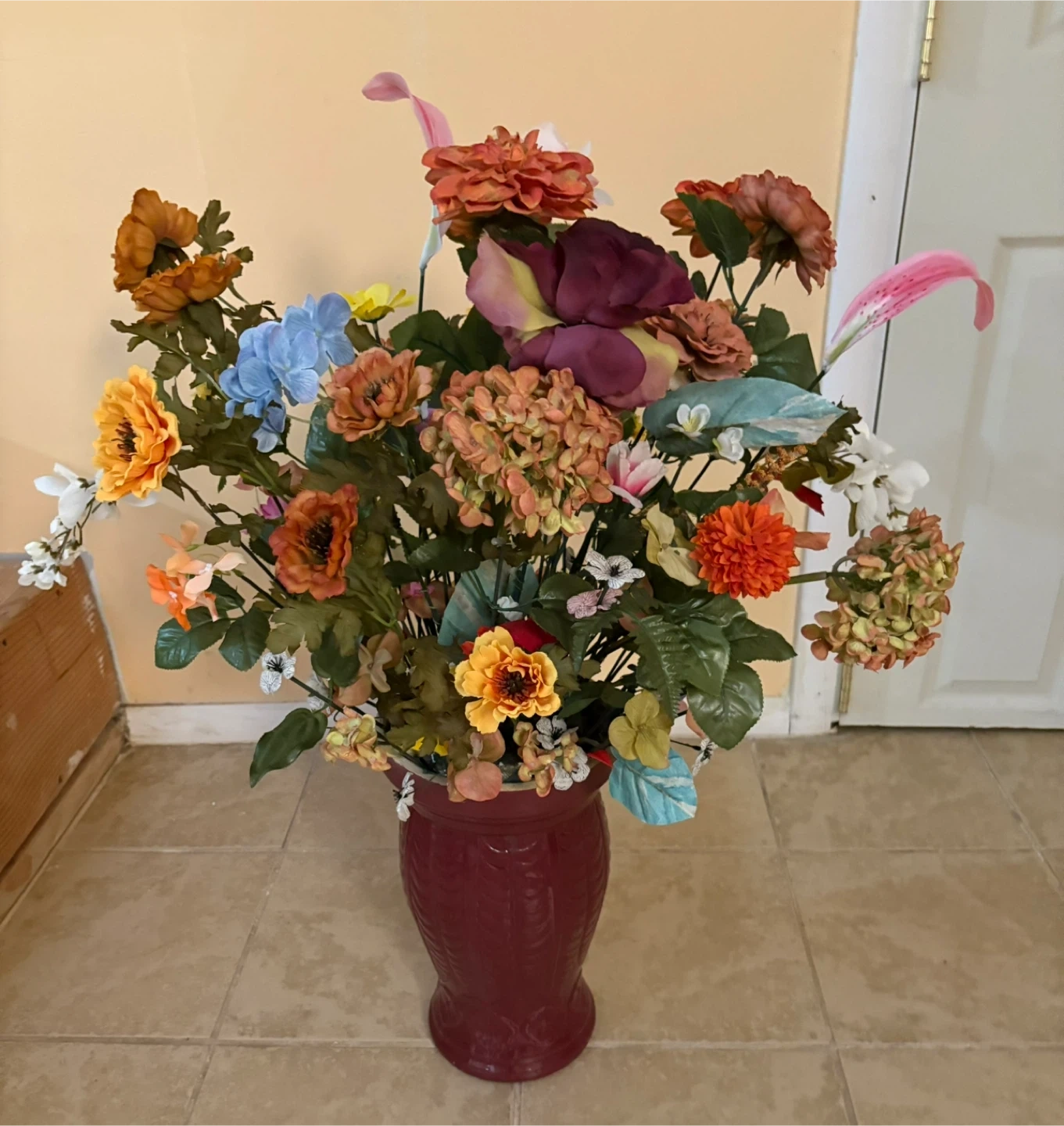 Artificial Floral Arrangement in Burgundy Vase