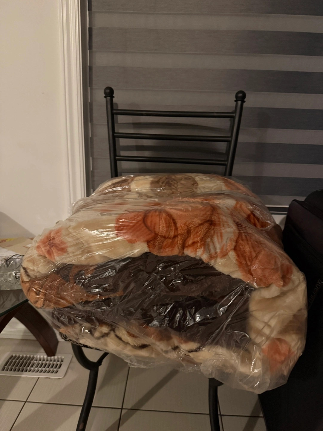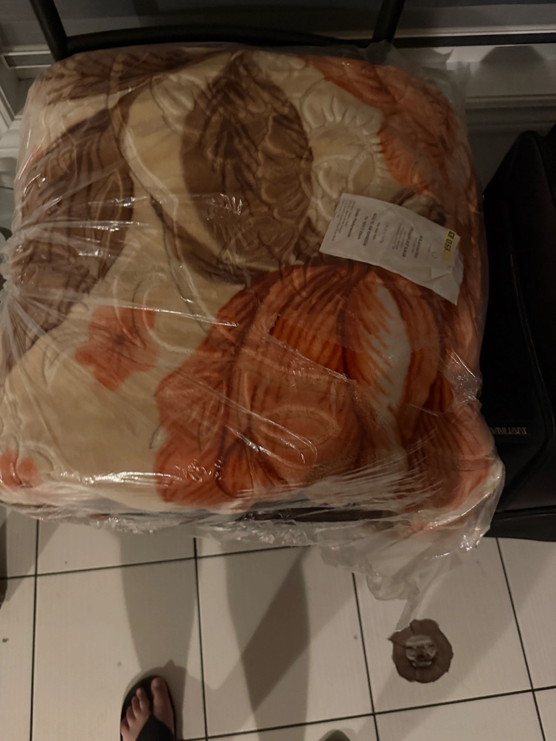 Very warm double bed Mink Indian blanket. Floral pattern. Orange, beige and brown colours. Twice used and recently dry cleaned and neatly packed