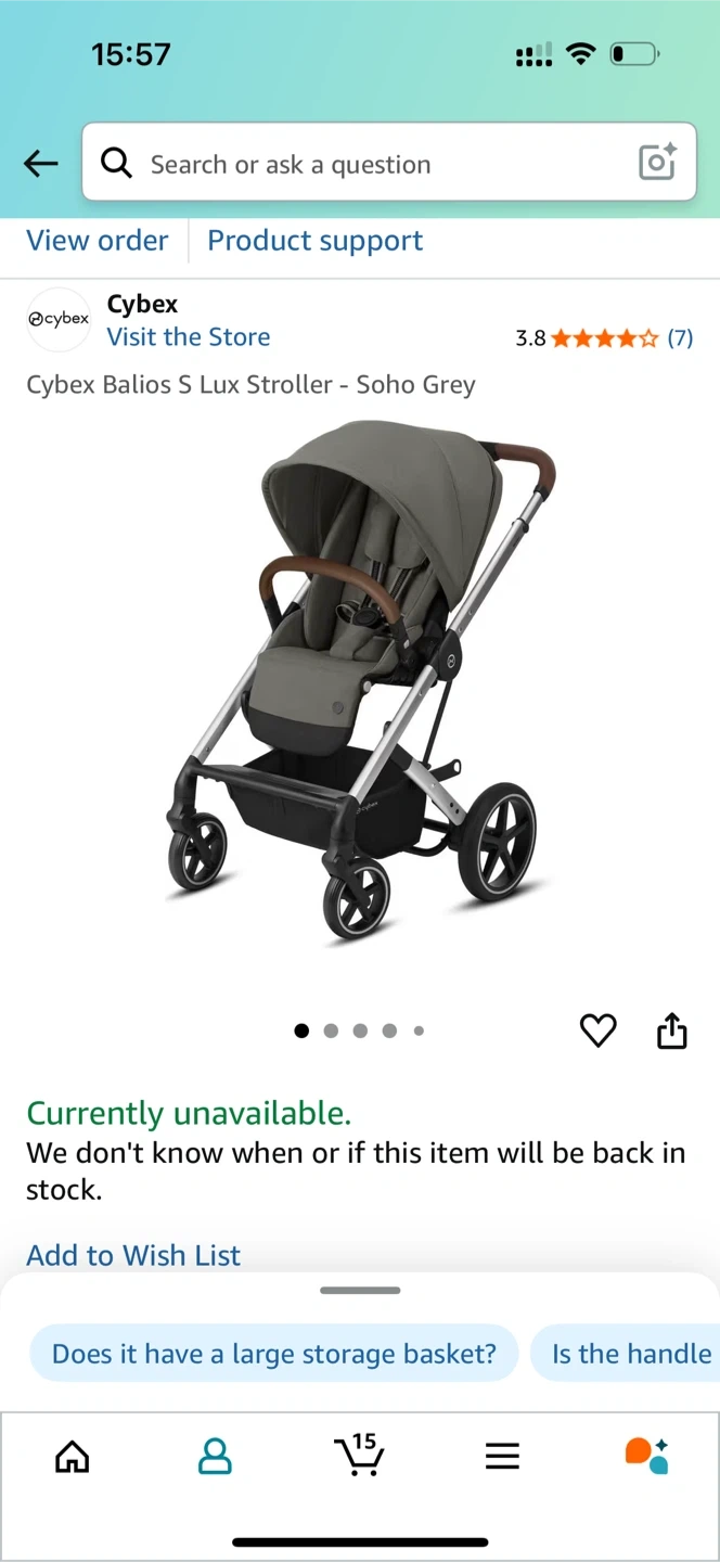 5Selling a Cybex Balios S Lux stroller in Soho Grey! It's in great condition and ready for a new home. The stroller has a large storage basket and measures approximately 110cm in height, 60.5cm in width, and 90cm in depth. Perfect for navigating city streets or park trails!