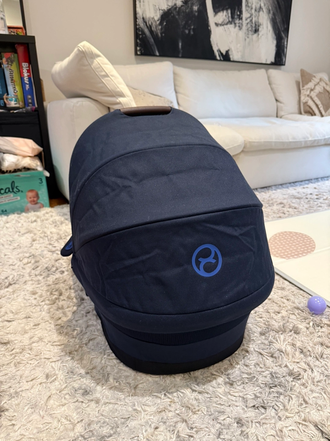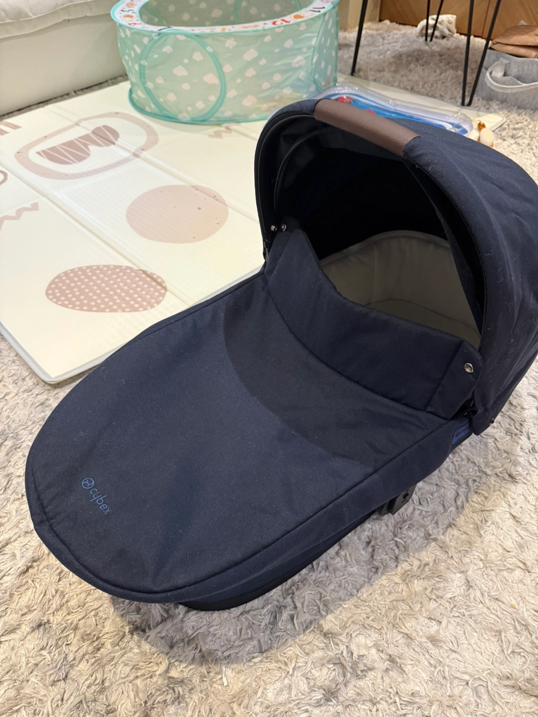 Selling a Cybex carry cot bassinet in navy blue! It's in great shape and ready for a new home. Perfect for strolls with your little one