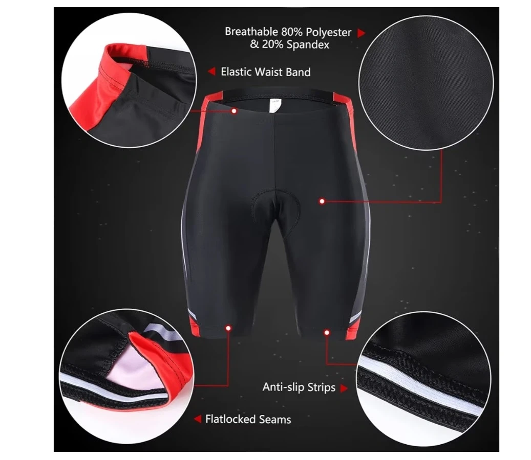 26Brand New These cycling shorts are designed for comfort and performance! They feature breathable 80% polyester and 20% spandex material, an elastic waistband, and anti-slip strips. The flatlocked seams add to the durability and comfort. The pad is designed according to the human body structure to provide superior softness and comfort while riding your bicycle