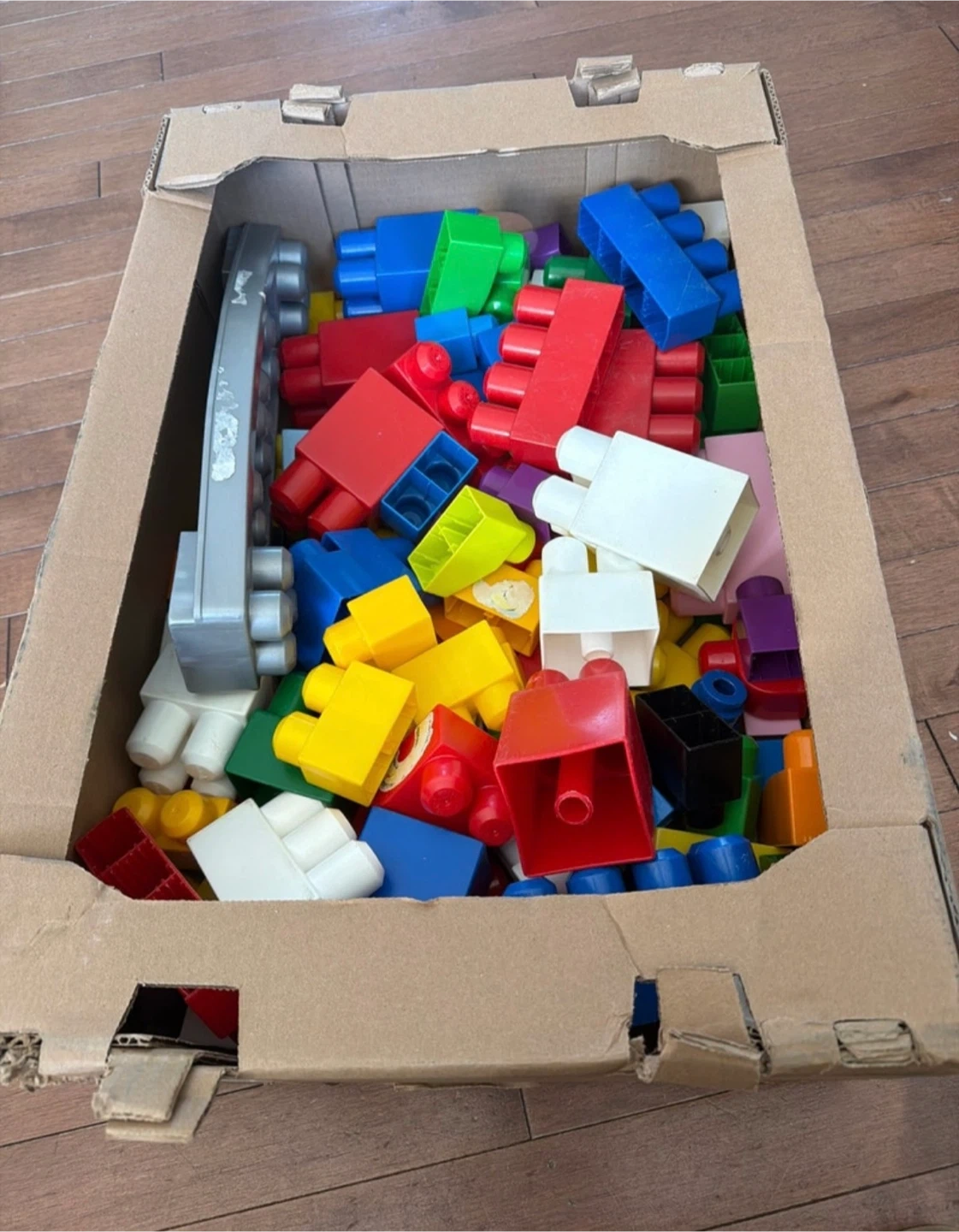 This is a large box of used Mega Blocks for your little builder to enjoy. The set includes a variety of colours and shapes, perfect for creative play and early childhood development. 100pcs