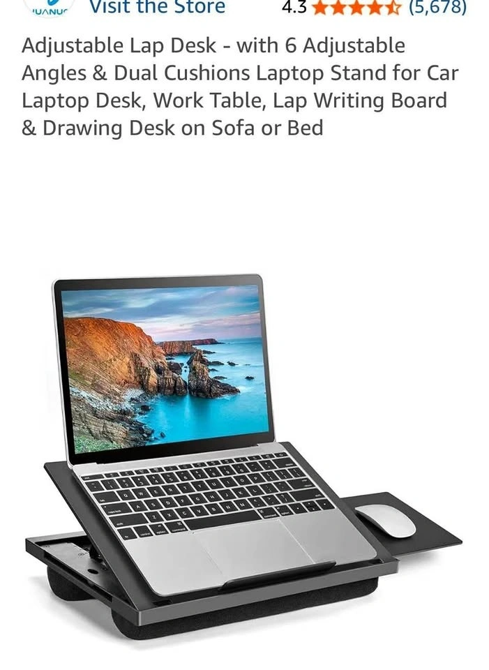 Adjustable Lap Desk Laptop Stand w/ 6 Angles Cushions Mouse Tray