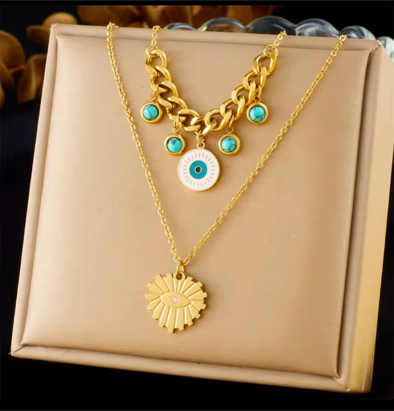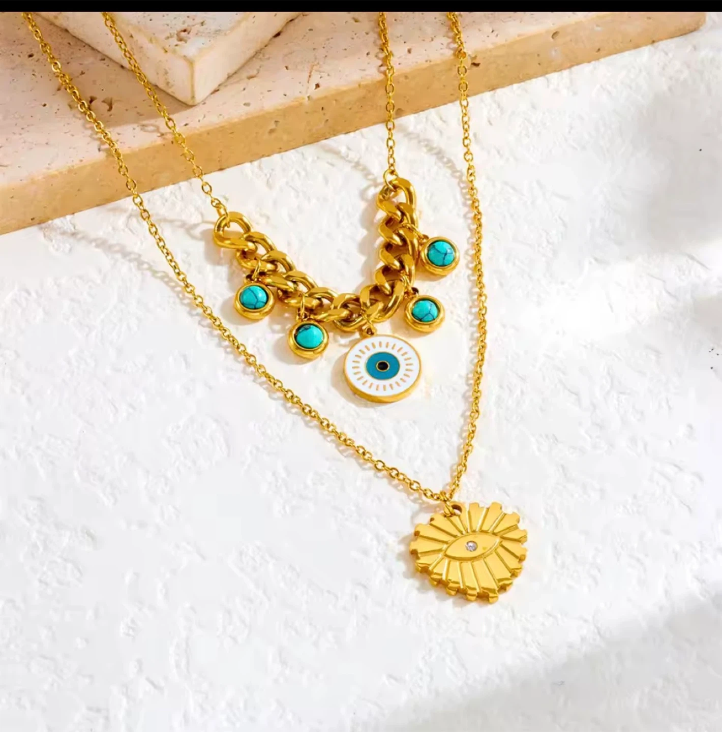 Luxury stainless‑steel jewelry coated in 18K gold plating for a long‑lasting, high‑shine finish.