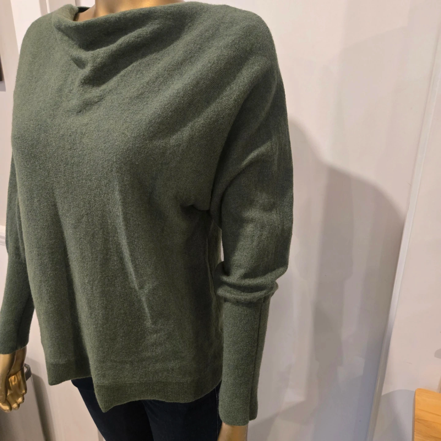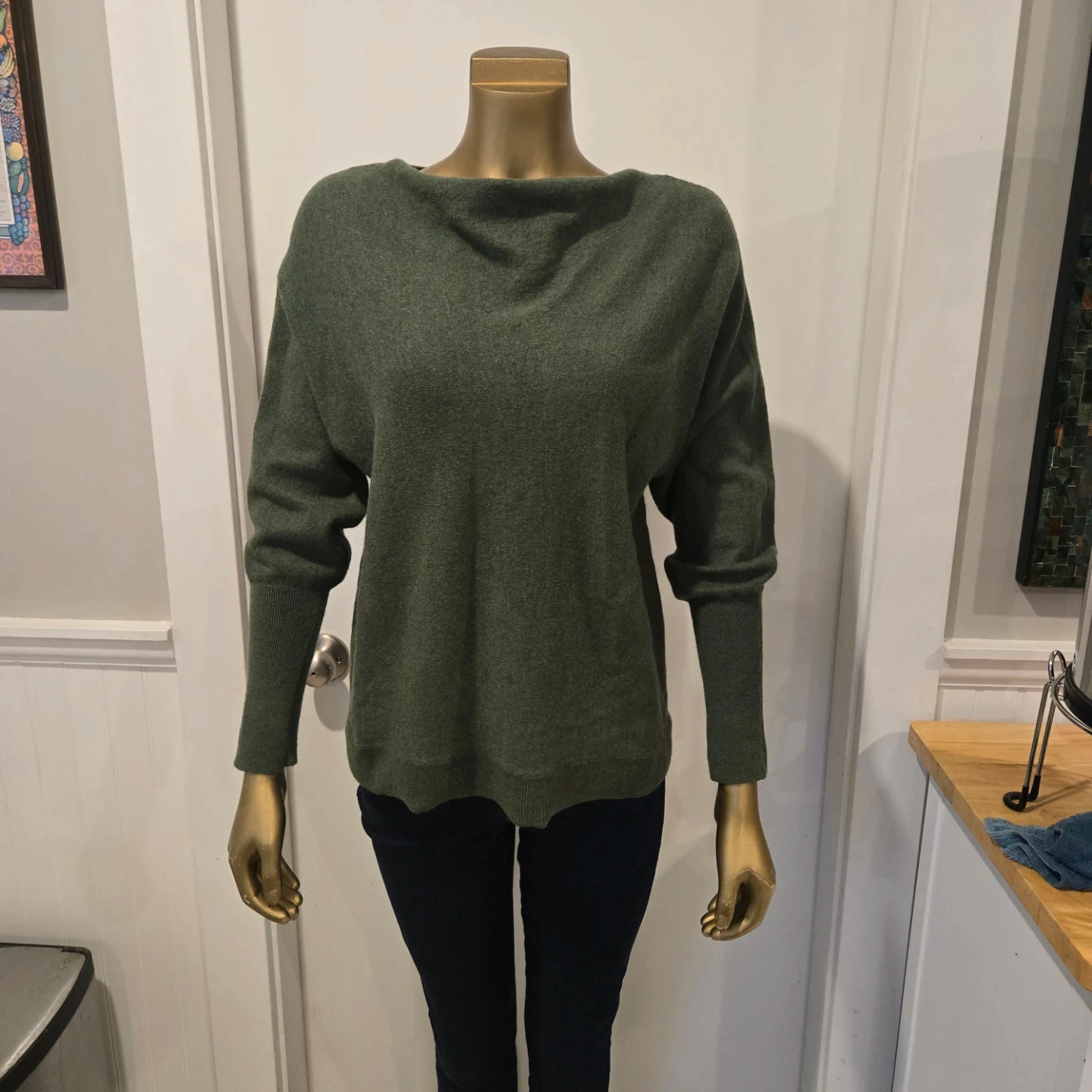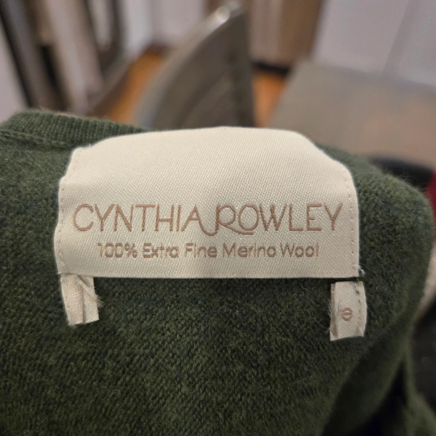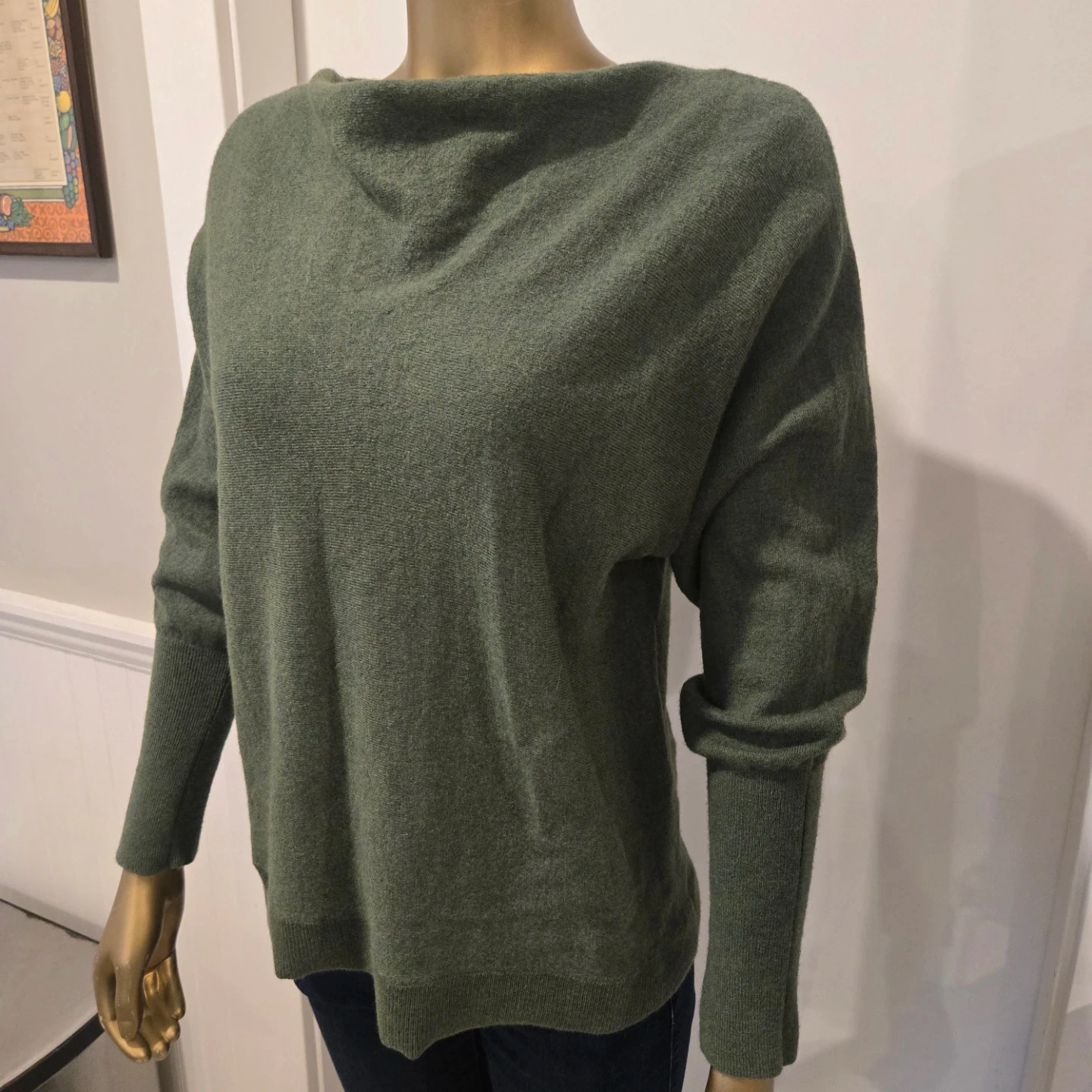 82Cozy and stylish Cynthia Rowley sweater made from 100% extra fine merino wool! It's a beautiful olive green colour and perfect for staying warm and fashionable this season