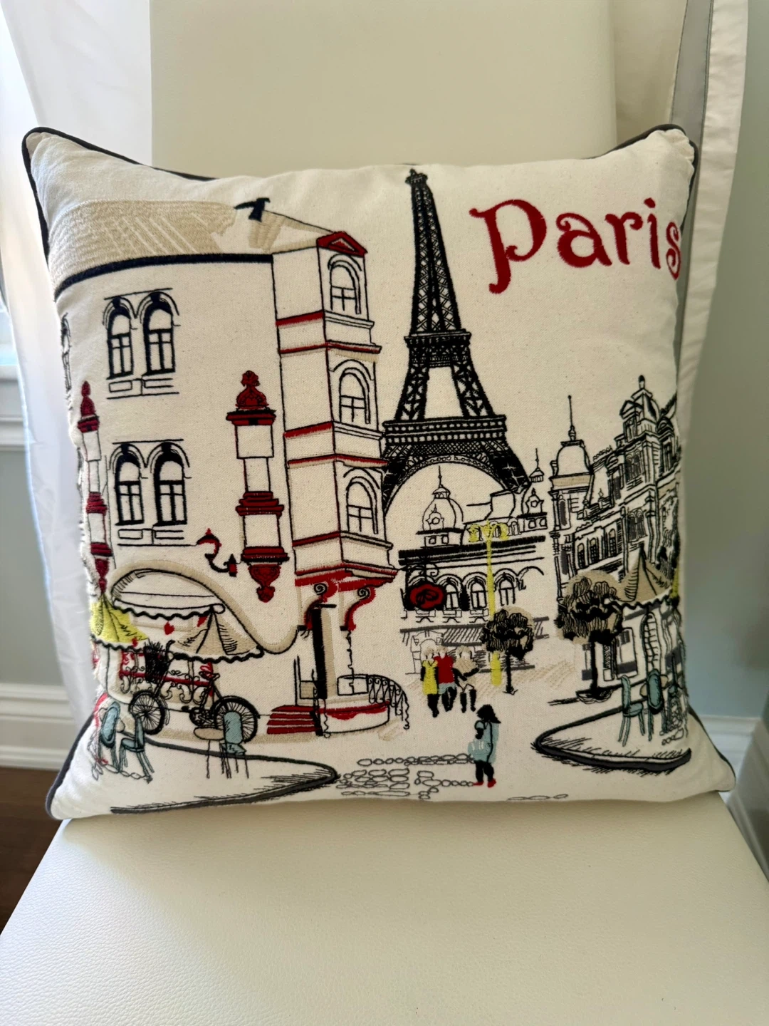 ‼️ d o w n s i z i n g ‼️ 📍 pick up near Greenbank / Hunt Club Add a touch of Parisian charm to your home with this Cynthia Rowley accent pillow! The cover is 100% cotton and features a beautiful embroidered design of Paris. Down-filled 🚫 clean, smoke-free home / no pet hair Thank you for your interest! Merci de votre intérêt !
