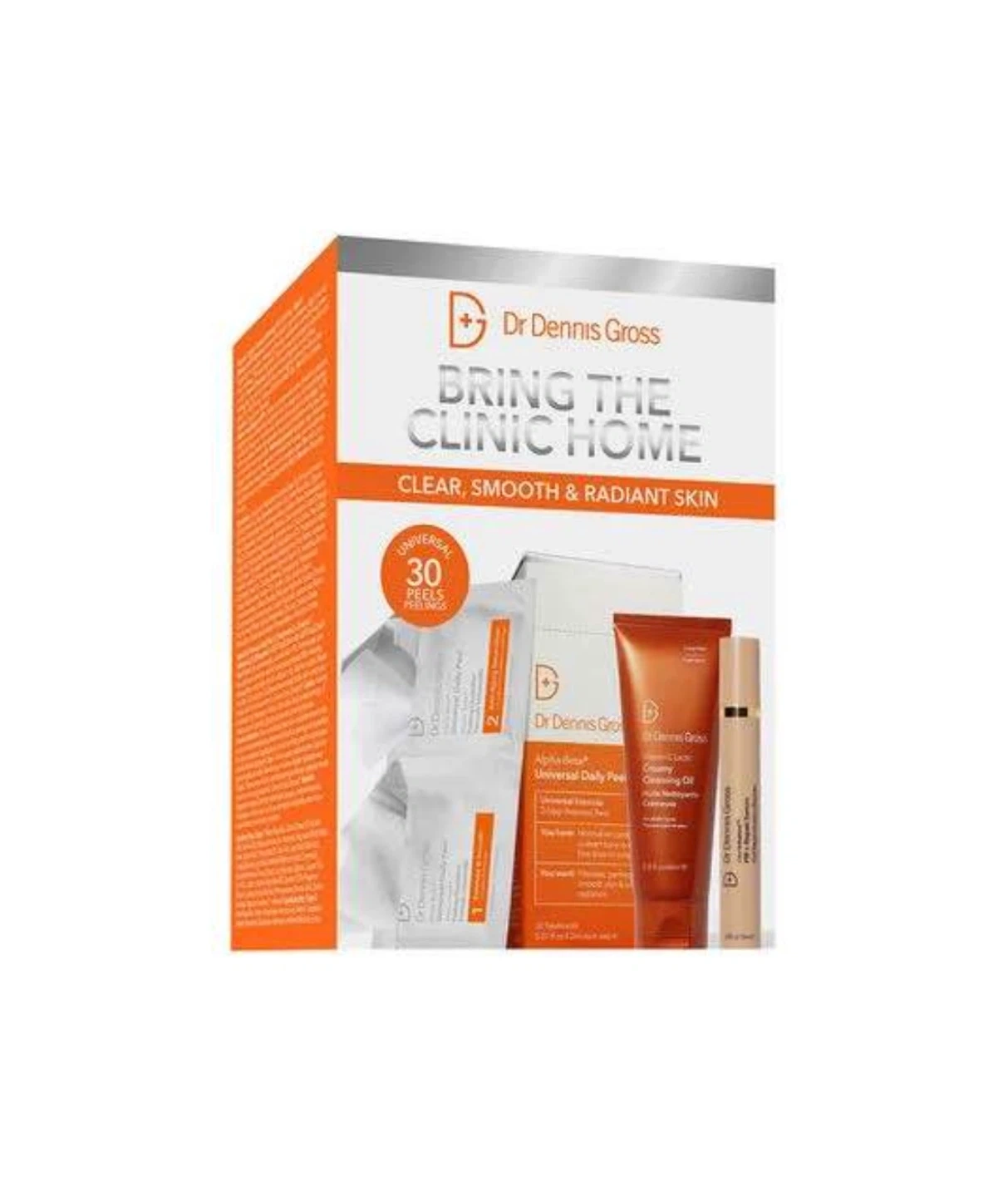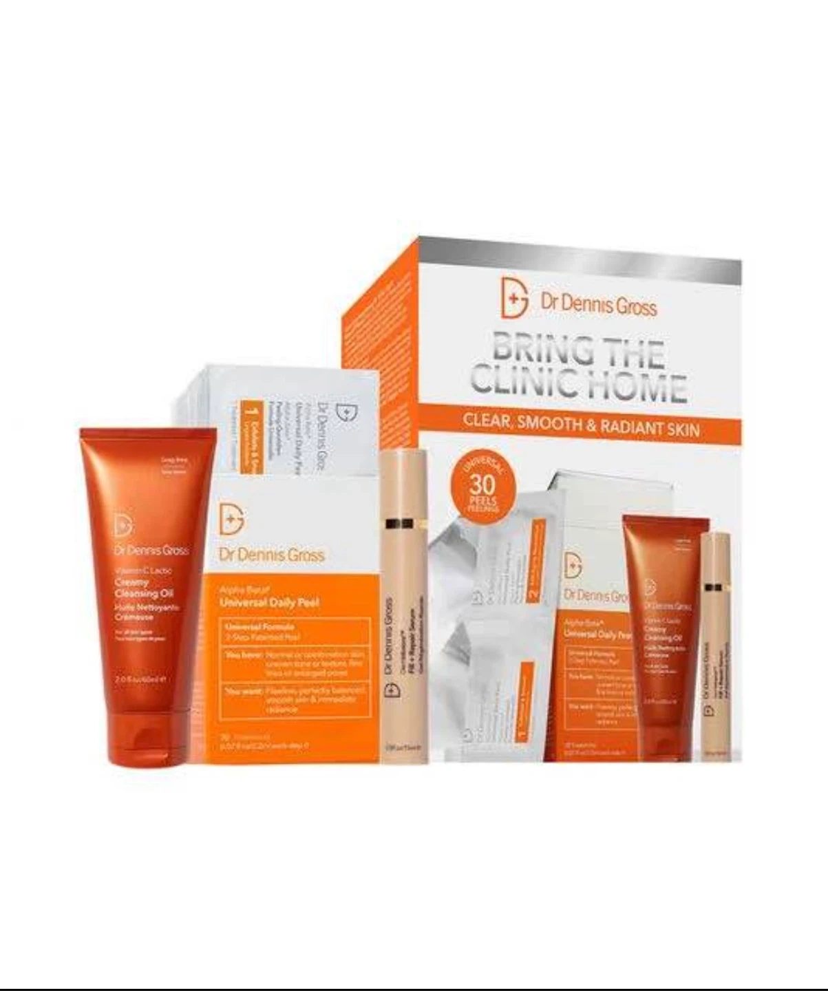 This Dr. Dennis Gross kit comes with 2 x 30 extra strength peels treatment, the Alpha Beta Extra Strength Daily Peel and the Alpha Beta Cleansing Oil. It's designed for clear, smooth, and radiant skin.