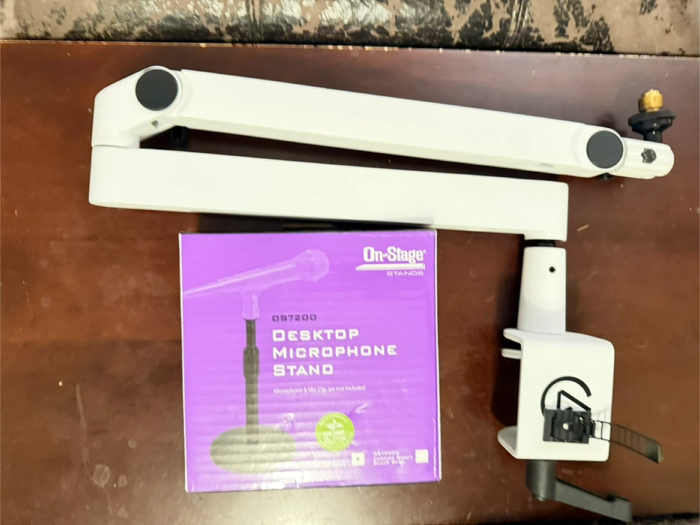 Low profile mic arm and desktop mic stand