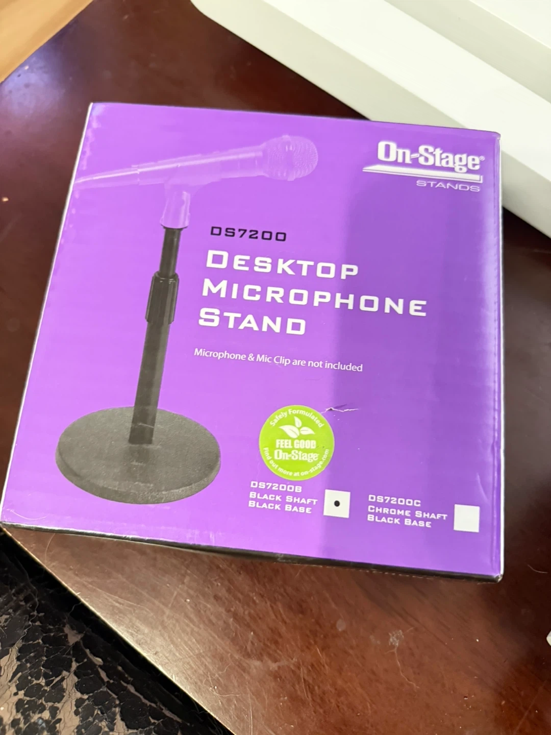 • Adjustable height, heavy stable base, includes mic clip.