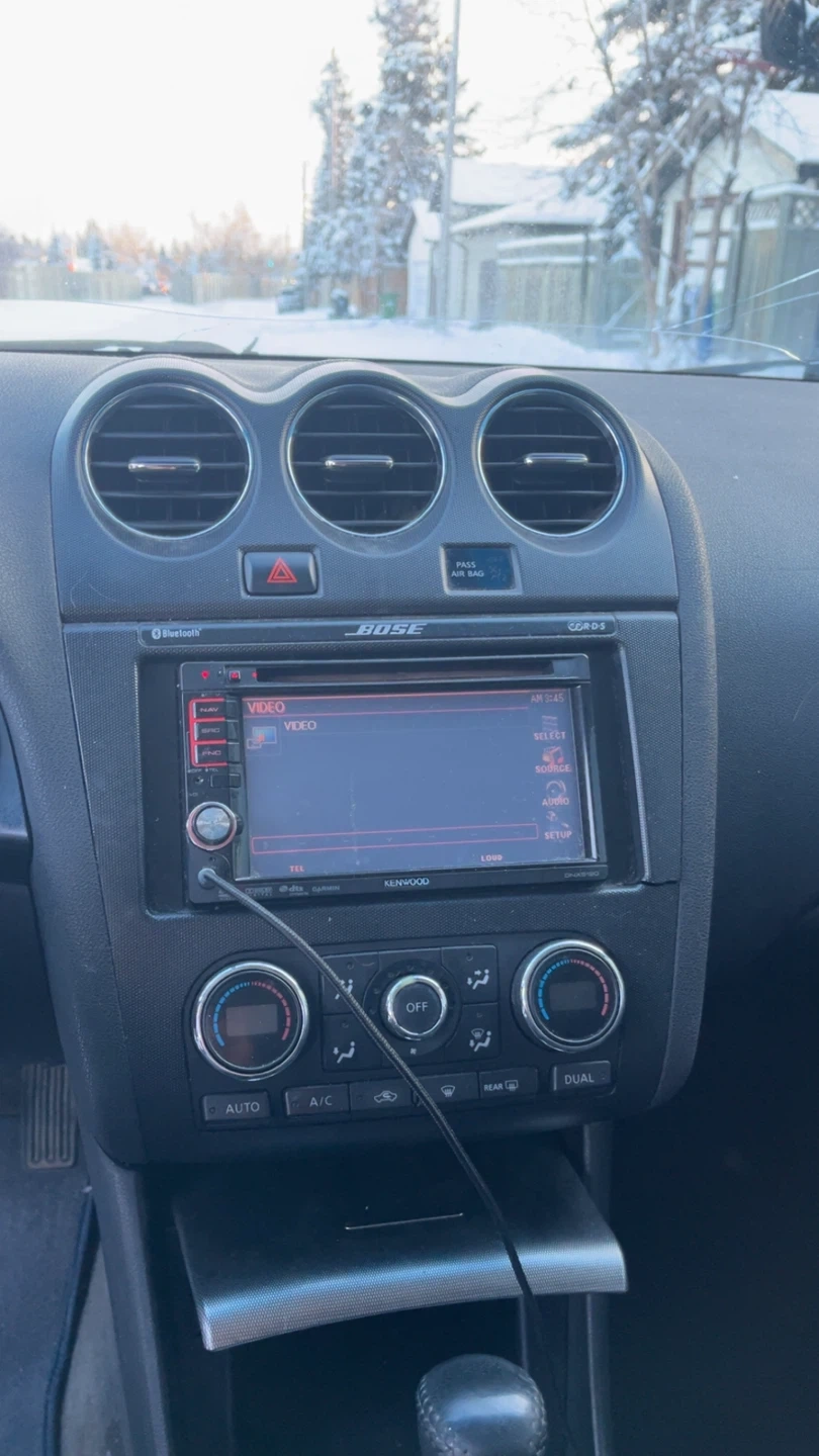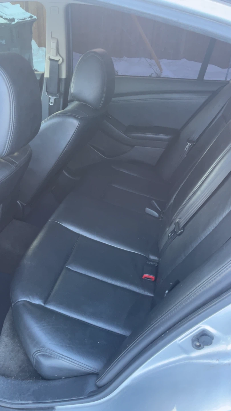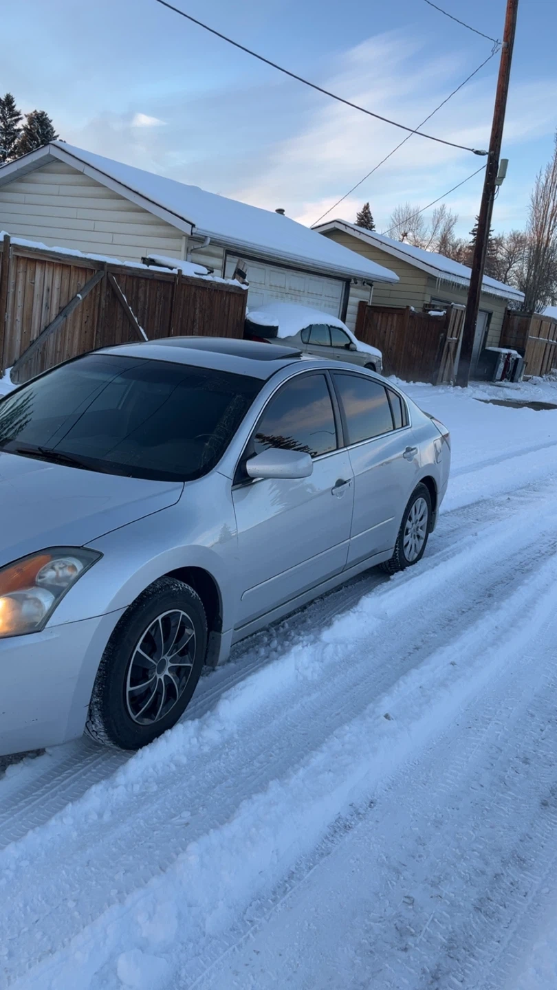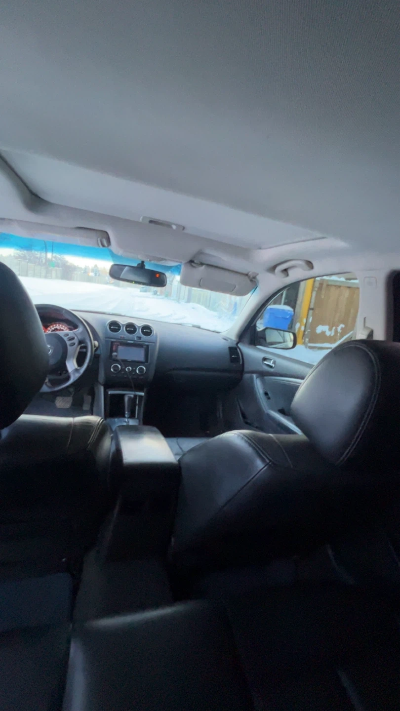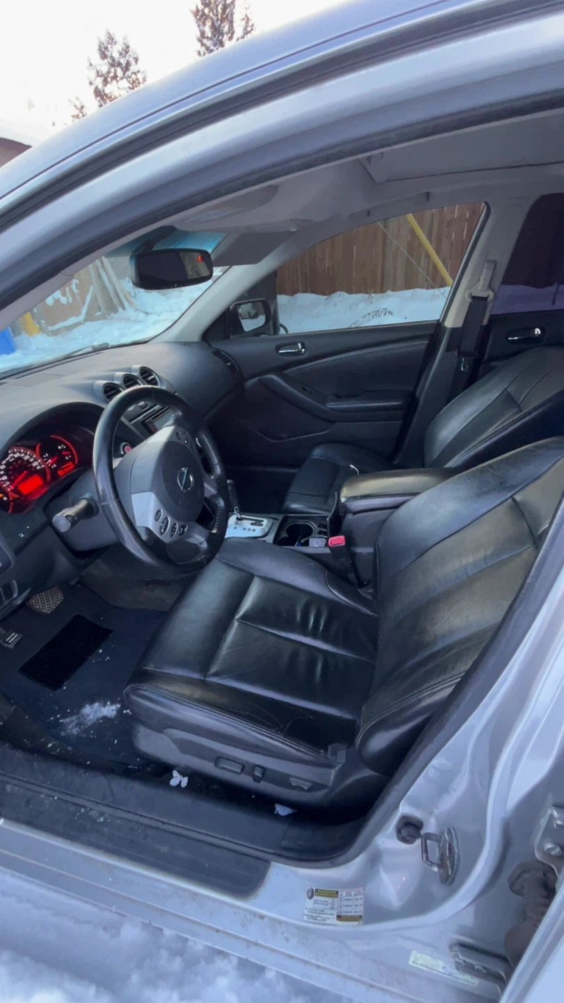 Selling a silver Nissan Altima sedan. It has a sunroof and black leather interior. Great for getting around town!