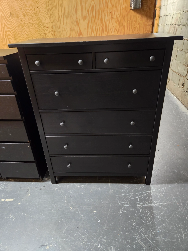 Selling a gently used IKEA Hemnes dresser in black.It has six drawers, providing lots of storage space. Perfect for organizing your clothes or other items!